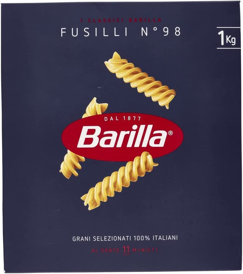 Barilla - Pasta Fusilli - Short Durum Wheat Semolina Noodles - The Classics - 1 kg - As a staple of the Mediterranean diet, pasta is a source of grains and low in sodium and fat. - Bite-resistant texture - Cooking time: 11 minutes - Durum wheat semolina pasta, a source of grains. Barilla is an Italian family business that has been passionate about pasta since 1877. Our sauces, noodles, and grains are tasty, safe, and contribute to a balanced diet. Grain Ingredients INGREDIENTS Grain Ingredients