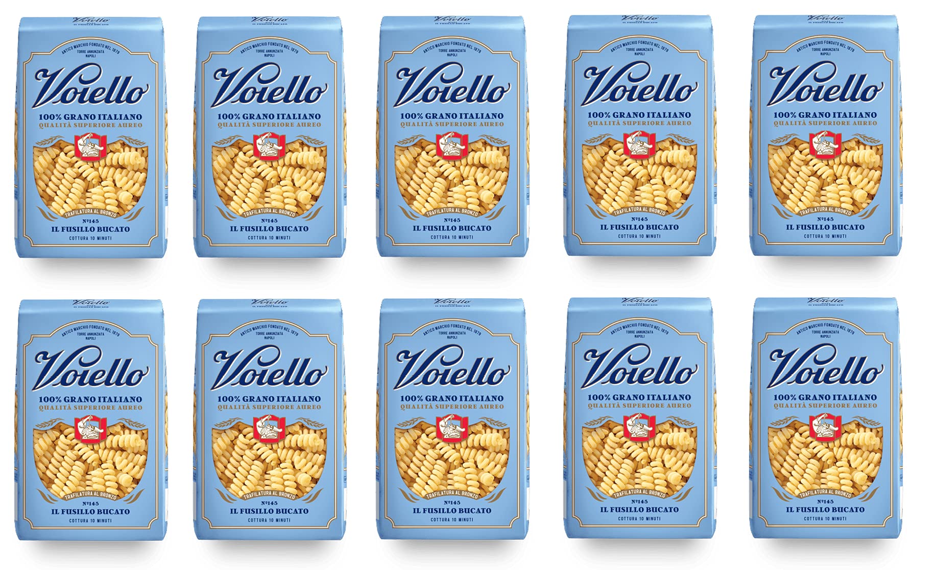 Lot de 10 pâtes Voiello Il Fusillo Bucato n 145 - 100 blé italien - 500 g - Pâtes en grès de blé dur - Dessin bronze