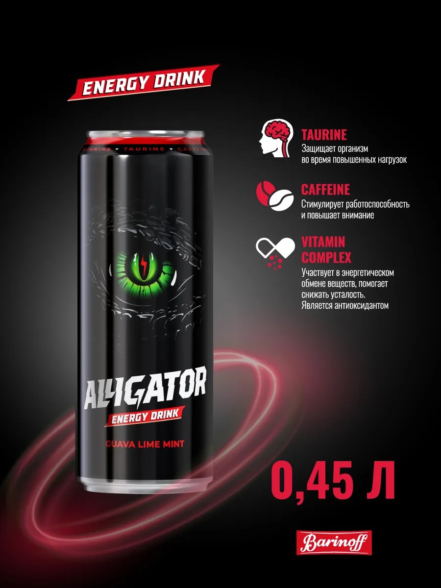 Barinoff Энергетик Alligator Гуава Лайм Мята 0,45 л