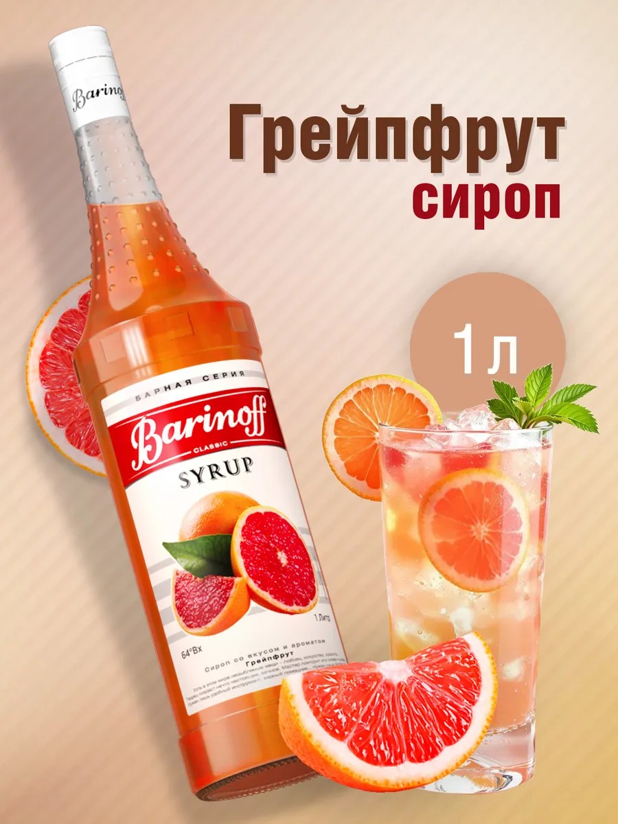 Сироп Barinoff Грейпфрут является излюбленным лакомством многих сладкоежек. Сироп Грейпфрут характеризуется высоким содержанием сахара, что положительно сказывается на сроке хранения продукта и исключает возможность брожения. Именно поэтому грейпфрутовый сироп широко применяется в сфере HoReCa в качестве ароматической добавки для кофейных напитков, холодного чая, лимонада, содовой и т. д. Грейпфрутовый сироп также участвует в смешивании разнообразных прохладительных напитков и алкогольных коктейлей. По словам профессионалов, он особенно хорош в дуэте с вермутом. Натуральный грейпфрутовый сироп имеет насыщенный темно - янтарный цвет, восхитительный фруктово - цитрусовый аромат и легкую горчинку.