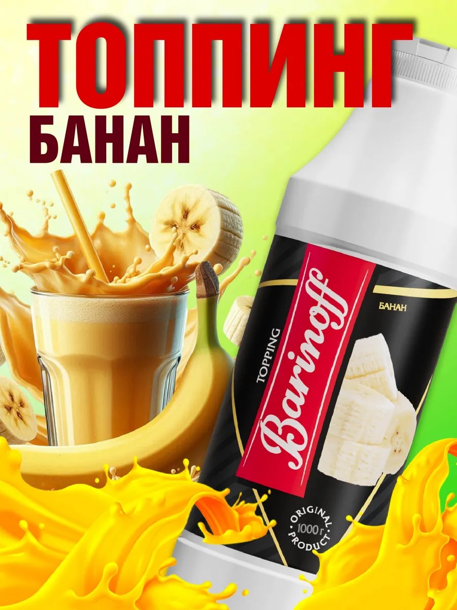 Barinoff Banana Topping is a delicious addition to your favorite desserts and drinks. This thick and aromatic topping with the rich flavor of ripe banana is the perfect choice for those who appreciate natural taste and high quality. It's ideal for decorating ice cream, coffee, milkshakes, and other treats, adding a unique tropical aroma and sweetness. Barinoff Banana Topping is made from natural banana puree, sugar, citric acid, and flavoring, guaranteeing its superior taste and aroma. Thanks to its convenient 1 kg packaging, this topping will become an indispensable assistant for anyone who loves to pamper themselves and their loved ones with delicious and original desserts.