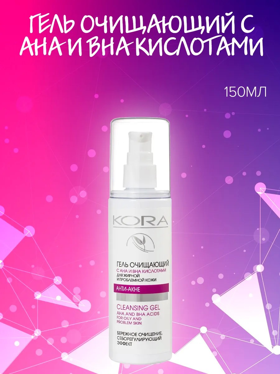 | Полное наименование товара | Кора Гель очищающий с AHA и BHA кислотами для жирной кожи 150 мл |