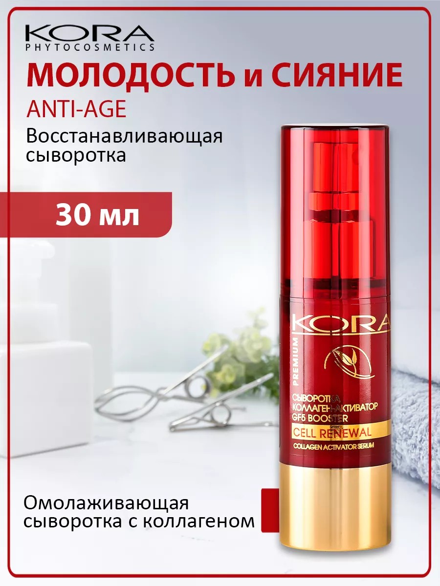 КОРА Увлажняющая сыворотка флюид коллаген активатор GF5, 30 мл