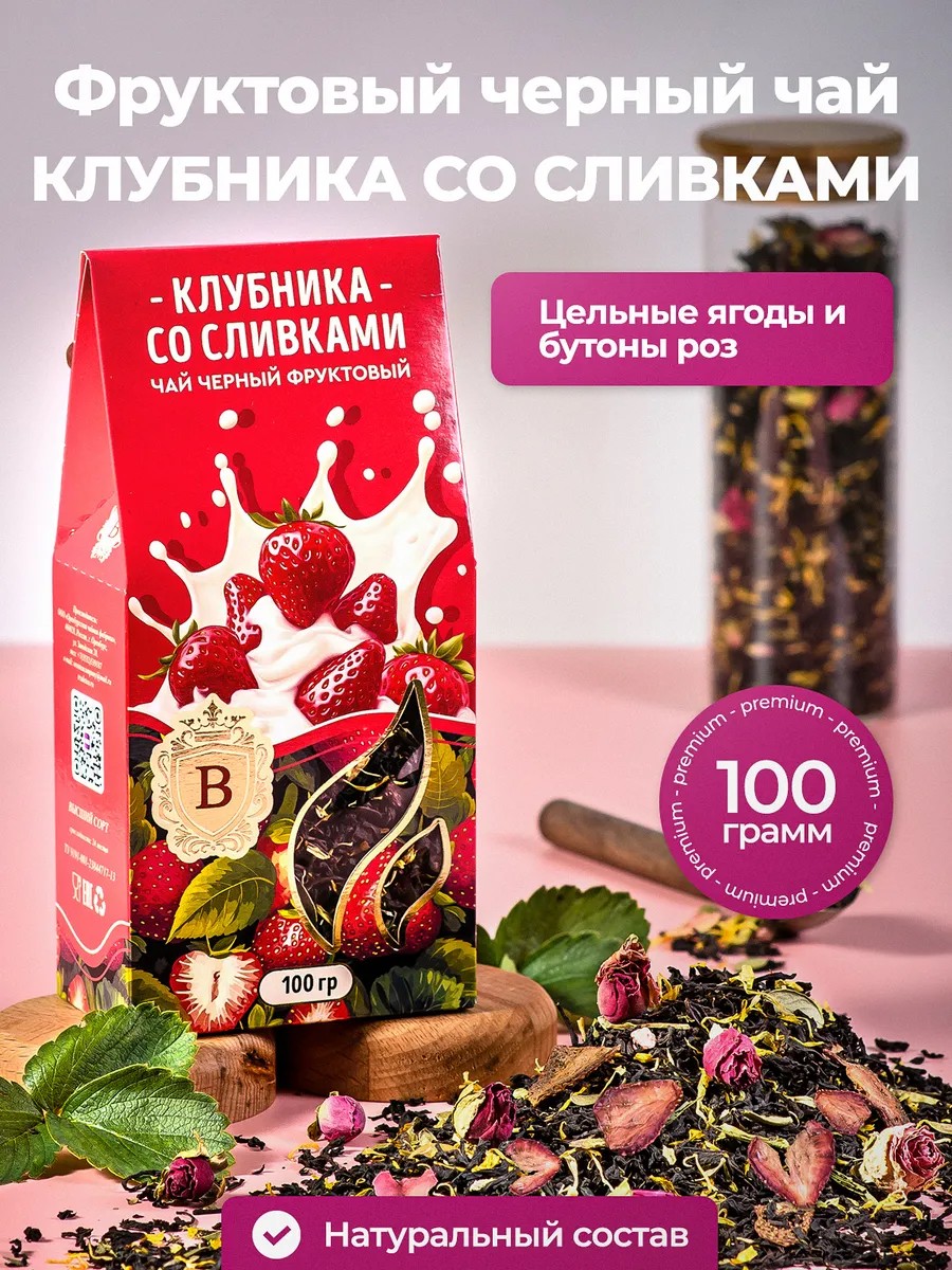 | Полное наименование товара | Чай черный фруктовый Клубника со сливками, 100 гр |