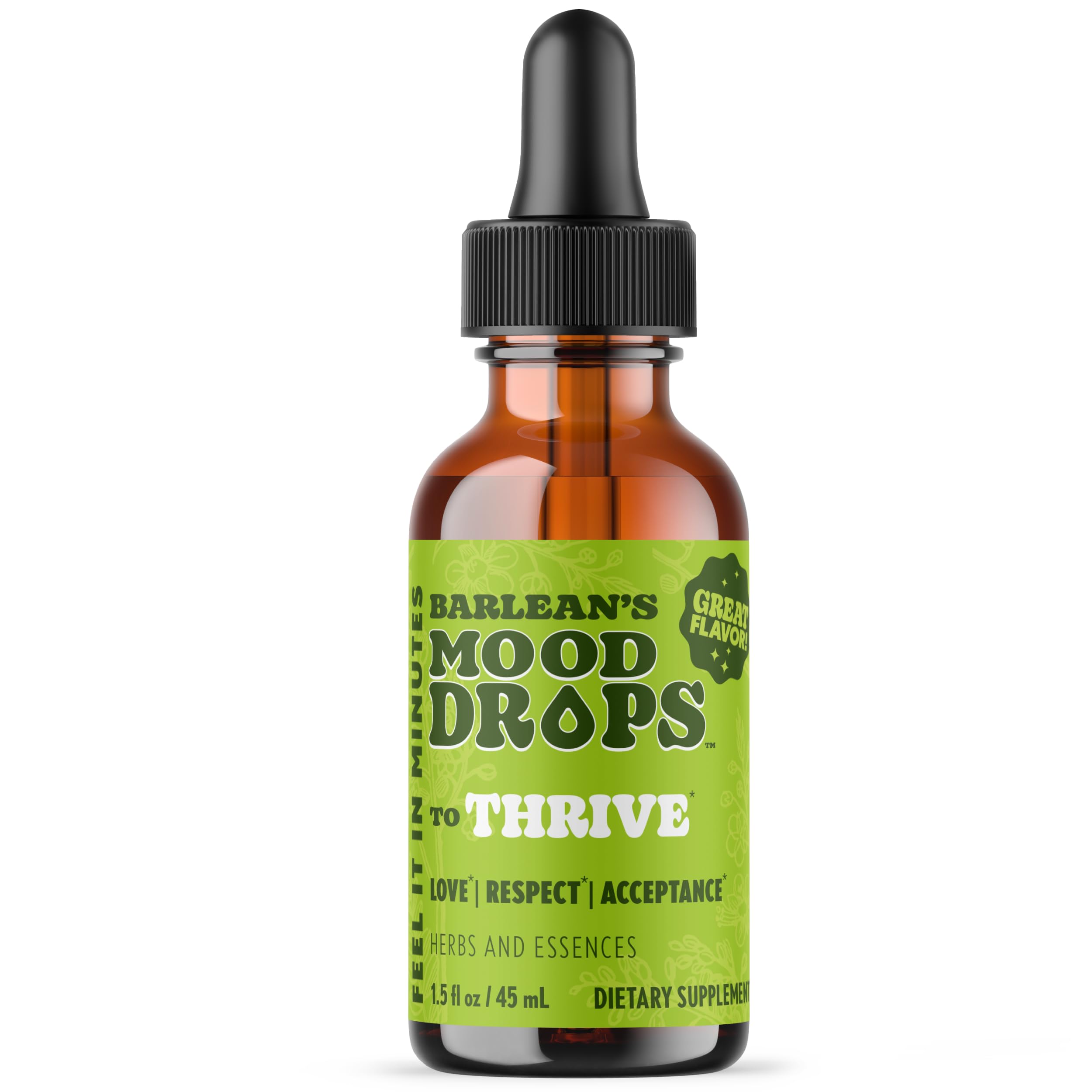 Barlean's Mood Booster Supplement Thrive Liquid Drops Supplements Ashawagandha L Theanine and Lion's Mane Extract Adaptogen Herbs Drops 1.5 oz