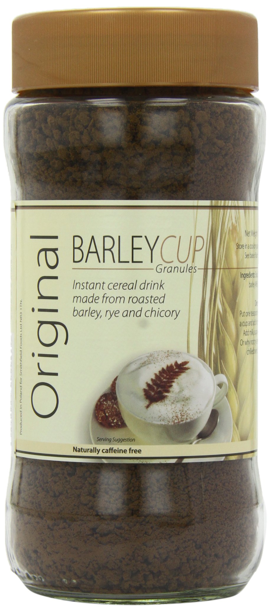 A naturally refreshing instant cereal drink with no caffeine. Fat-free and high in fiber. Suitable for diabetics. Lactose-free. INGREDIENTS Soluble solids from roasted barley (48 ), rye, chicoryLactose-free. Suitable for diabetics. Fat-free and high in fiber. A naturally refreshing, caffeine-free cereal drink. Une boisson céréalière instantanée naturellement rafraîchissante sans caféine. Sans gras et riche en fibres. Convient aux diabétiques. Sans lactose. INGRÉDIENTS Solides solubles d'orge torréfié (48 ), de seigle, de chicoréeSans lactose. Convient aux diabétiques. Sans graisse et riche en fibres. Une boisson de céréales naturellement rafraîchissante sans caféine.