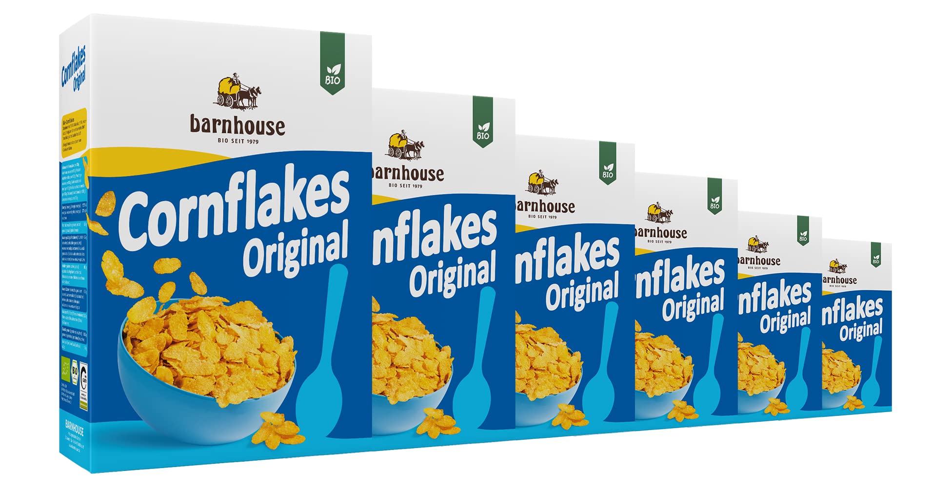 Barnhouse Cornflakes, flocons de champagne bio de fabrication traditionnelle, délicatement sucrés, 6 x 375 g