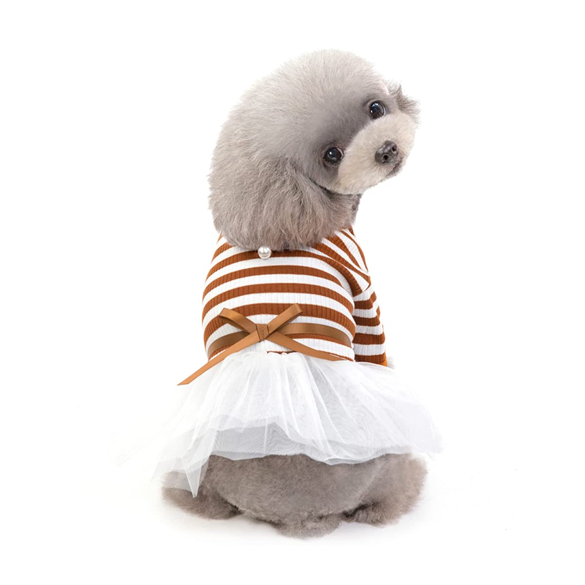 Barrageon Hunde Kleid Süß Prinzessin Rock Kleidung Katze Welpe Für Kleine Mittelgroße Bowknot Haustier Sommerkleidung Hundekatze (Braun-XL) Rückenlänge: 35 cm Streifen - Braun