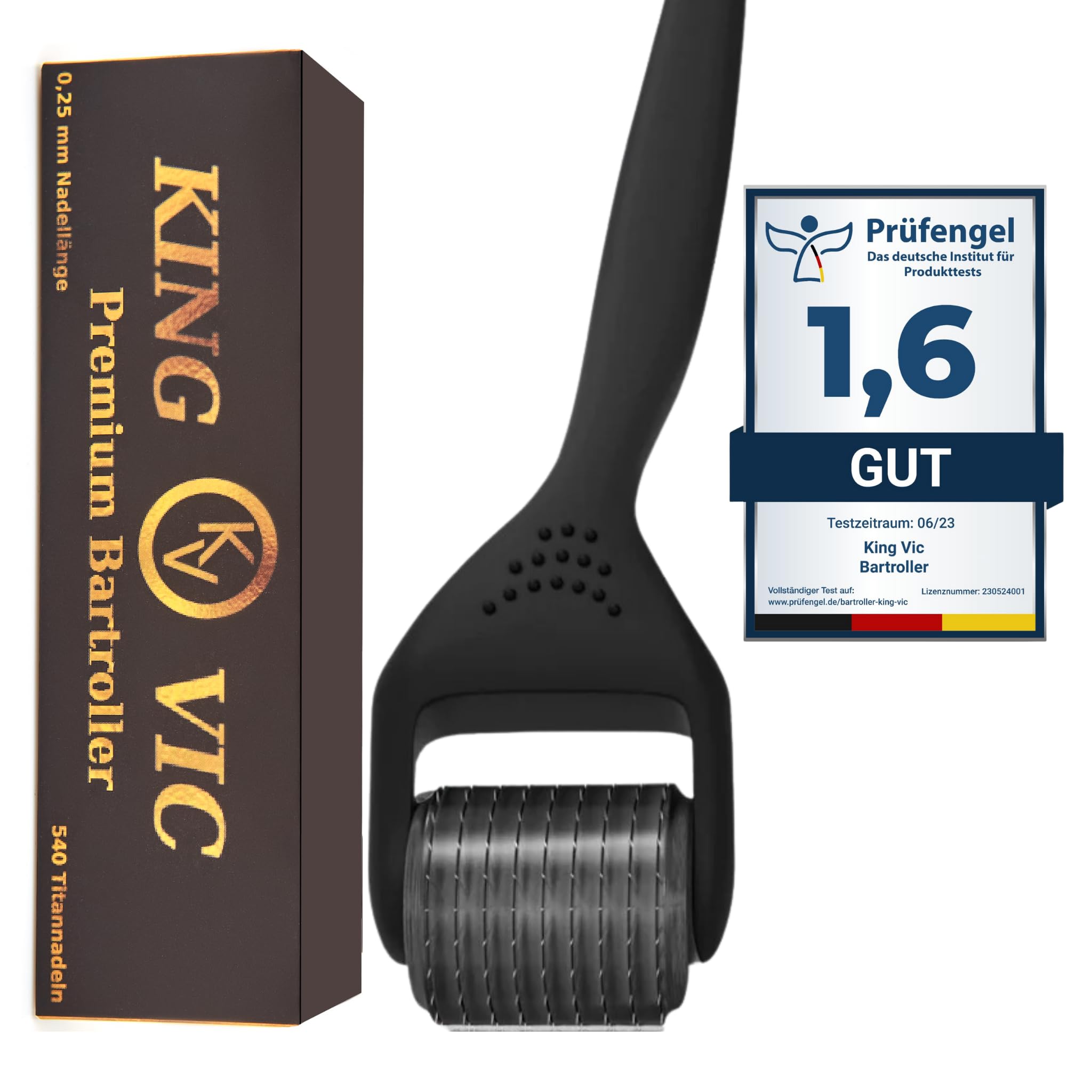 Rain your beard growth with the King Vic beard troller✓ The King Vic's bare scooter is the right device for you if you want to grow a healthy and dense beard. ✓The microscopic injuries in the skin cause the microscopic injuries under their beard, which stimulates skin regeneration. ✓The skin -owned formation of collagen is stimulated and the blood flow to the skin is improved. ✓ New tissue is formed and sleeping hair follicles are reactivated. ✓ALL This promotes the growth of the facial hair and helps you get the dense and masculine beard faster you want. ✓ After microneedling, the skin and hair follicles can absorb their beard oil or Bartserum much more effectively.In this way, your beard care products will be able to contribute even better to the beard growth and a well -kept and healthy beard. ✓ The head scooter's head consists of 540 titanium needles 0.25mm.The use of the bar scooter is put into aisle, which stimulates beard growth by promoting blood circulation and keratin production. ✓ In addition to the promotion of beard growth, the complexion is also improved.The applied technology called micron icing has been used in dermatology for years. ✓The micro needle with the bar scooter significantly increases the absorption options of the skin.With the micron needles, your skin can be bearded products such as beard oils. Promotion of beard growth✓ During the treatment, make sure that you always maintain the same pressure and the same speed. ✓The tiny titanium needles cause even ""micro -injuries"" in the skin and then promote the beard growth at the maximum when regeneration. Warnings Use the bar scooter Dermaroller only from one and the same person.Use only with healthy skin: do not apply to irritated skin, e.g. for acne or sunburn.Avoid direct sunlight before and after use.Do not shave on the day of use, neither in front of it, nor afterwards.Keep away from children.In accordance with the marketing regulations, we cannot guarantee any results from the use of our products.quality: The bar scooter of the King Vic brand is one of the premium products in the beard care area.Don't look long and trust our brand quality with a 100 satisfaction guarantee.We are absolutely convinced of our quality product and offer you a 30-day money-back guarantee due to dissatisfaction.Hair growth: The beard dary roller changes your beard growth, helps to achieve a much healthier, thicker beard and optimally promote your beard growth.The micro needle with the bar scooter significantly increases the absorption option of the skin.Handling: The bar scooter is small, handy and has a dynamic design.The needles on the head scooter's head are only 0.25 mm long and made of titanium.The handle lies comfortably in your hand and gives you full control at Microneedling.This bare scooter is ideal for the rather sensitive and smaller parts of the face.Improves your complexion: Microneedling with the dermar roller is perforating the skin minimally for treatments on the face with extended pores, smaller wrinkles, scars or impurities and naturally stimulates the collagen and elastin production as well as the regeneration of your skin.Safe painless: The head of the scooter consists of 540 titanium needles (0.25 mm).The selected length of the needles is the most optimal and safest length for beginners for daily use.Clean the roller head before each use and then roll vertically, horizontally and diagonally on the areas to be treated about 6-8 times.Regen Sie Ihren Bartwuchs an mit dem King Vic Bartroller✓Der Bartroller von King Vic ist das richtige Gerät für Sie, wenn Sie sich einen gesunden und dichten Bart wachsen lassen wollen. ✓Die Mikronadeln am Roller verursachen mikroskopische Verletzungen in der Haut unter Ihrem Bart, wodurch die Hautregeneration angekurbelt wird. ✓Die hauteigene Bildung von Kollagen wird angeregt und die Durchblutung der Haut wird verbessert. ✓ Neues Gewebe wird gebildet und schlafende Haarfollikel werden reaktiviert. ✓All das fördert den Wuchs der Gesichtshaare und trägt dazu bei, dass Sie schneller den dichten und maskulinen Bart erhalten, den Sie sich wünschen. ✓Nach dem Microneedling können die Haut und die Haarfollikel Ihr Bartöl oder Bartserum viel wirksamer aufnehmen. So werden Ihre Bartpflegeprodukte noch besser zum Bartwuchs und zu einem gepflegten und gesunden Bart beitragen können. ✓Der Kopf des Bartrollers besteht aus 540 Titan-Nadeln 0.25mm. Durch den Gebrauch des Bartrollers wird die Kollagenproduktion in den Gang gesetzt, wodurch das Bartwachstum durch die Förderung der Durchblutung und der Keratinproduktion stimuliert wird. ✓ Neben der Förderung des Bartwachstums wird gleichzeitig auch noch das Hautbild verbessert. Die angewandte Technik namens Mikronadelung wird schon seit Jahren in der Dermatologie verwendet. ✓Die Mikro-Nadelung mit dem Bartroller erhöht die Absorptionsmöglichkeiten der Haut erheblich. Durch das Mikronadeln kann Ihre Haut Bartpflegeprodukte wie z.B. Bartöle. Förderung des Bartwuchses✓ Achten Sie während der Behandlung darauf, dass Sie immer den gleichen Druck und die gleiche Geschwindigkeit beibehalten. ✓Die winzigen Titannadeln verursachen gleichmäßige "Mikroverletzungen" in der Haut um dann bei der Regeneration den Bartwuchs maximal zu fördern. WARNHINWEISE Den Bartroller Dermaroller nur von einer und der gleichen Person anwenden. Nur bei gesunder Haut anwenden: Nicht auf gereizter Haut, z.B. bei Akne oder Sonnenbrand anwenden. Direkte Sonneneinstrahlung vor und nach der Anwendung vermeiden. Am Tag der Nutzung nicht rasieren, weder davor, noch danach. Von Kindern fern halten. In Übereinstimmung mit den Marketingbestimmungen können wir keine Ergebnisse aus der Verwendung unserer Produkte garantieren.QUALITÄT: Der Bartroller der Marke King Vic gehört zu den Premium Produkten im Bartpflegebereich. Suchen Sie nicht lange und vertrauen Sie unserer Markenqualität mit 100 Zufriedenheitsgarantie. Wir sind v