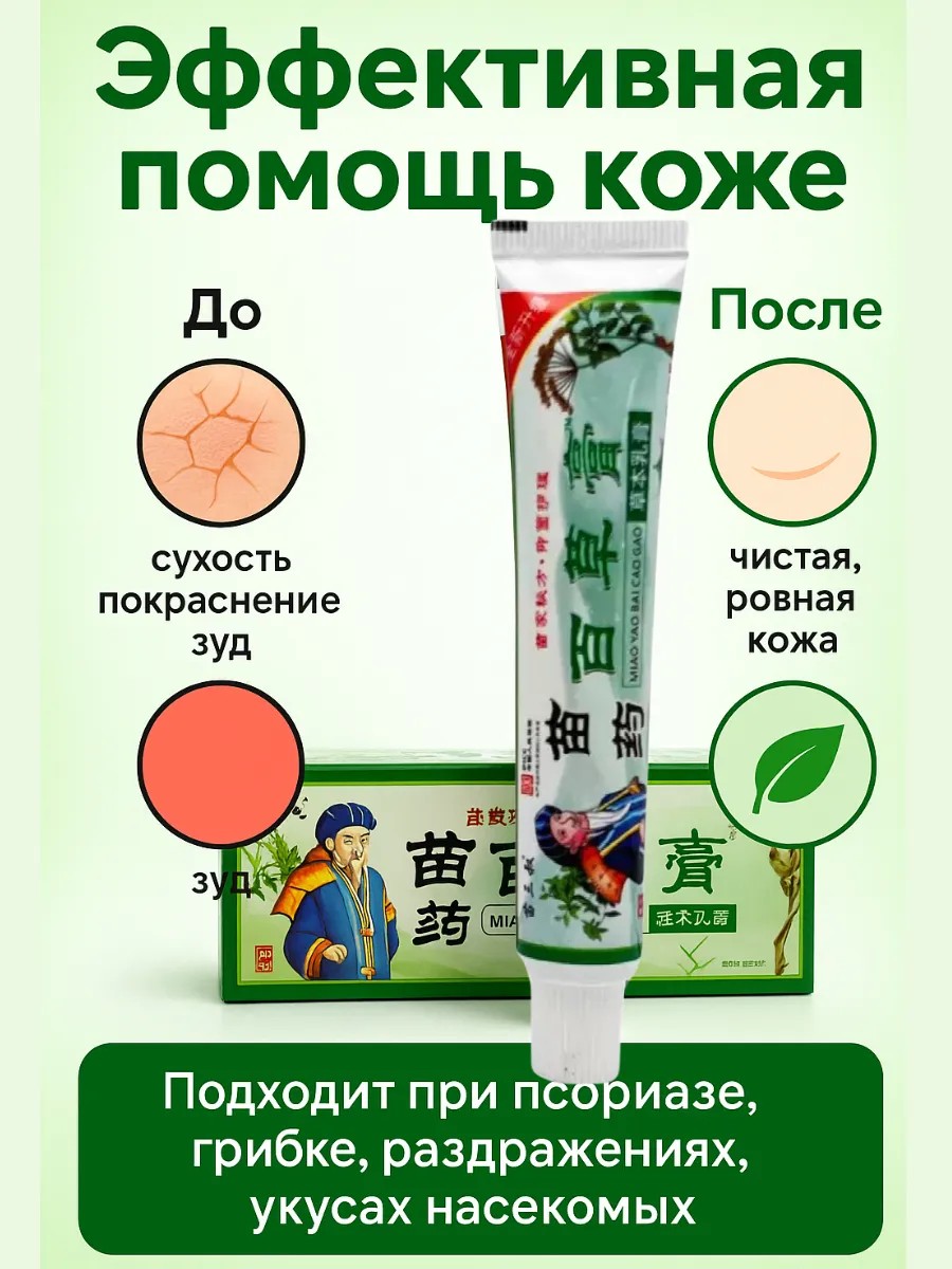 Эта мазь разработана на основе древних рецептов китайской народной медицины и современных технологий. Секрет её эффективности — в сочетании натуральных трав и активных компонентов, которые воздействуют сразу в нескольких направлениях: снимают воспаление, борются с грибком, ускоряют заживление кожи и восстанавливают её естественный баланс. Крем подходит для применения на разных участках тела: на ногах, руках, спине, локтях, а также в деликатных зонах. Он помогает при псориазе, экземе, грибковых инфекциях, геморрое, трещинах кожи и раздражениях. Благодаря легкой текстуре средство быстро впитывается, не оставляя жирных следов, и начинает работать с первых минут после нанесения.