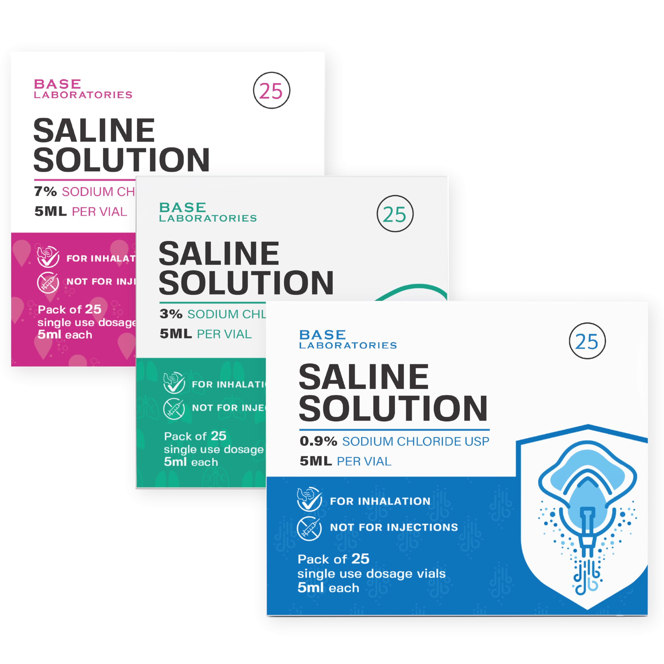 Base Saline Solution for Nebulizer 0.9% + 3% + 7% 25pk - 2pk
