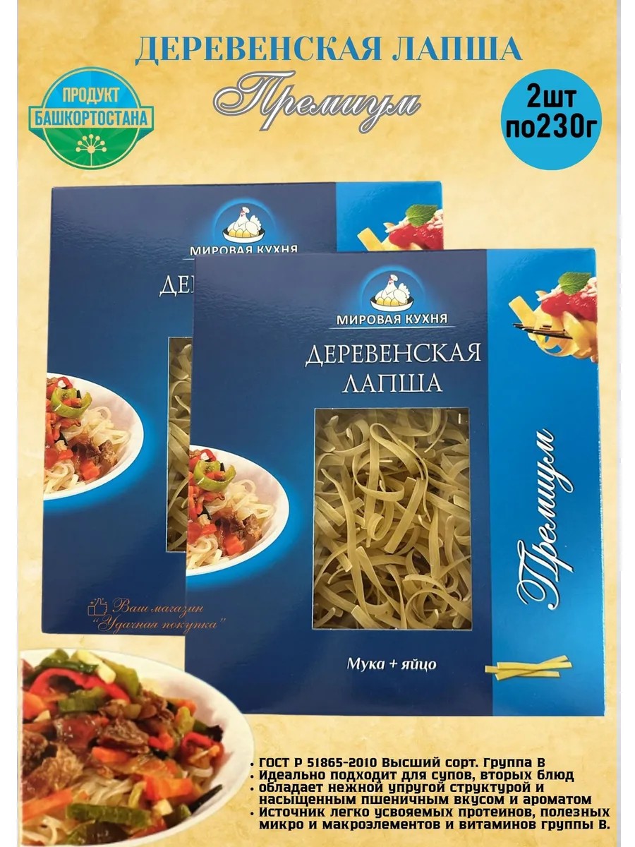 Башкирская макаронная фабрика Лапша Деревенская премиум 2 шт по 230г