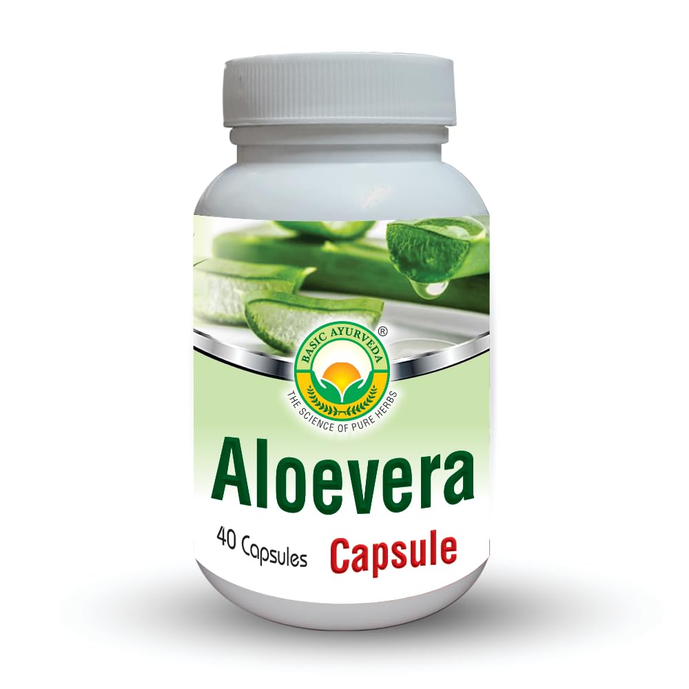 BASIC AYURVEDA Aloe Vera Capsules - 460 MG | Support Gut Health, Digestive Health & Immune Health | Natural Herbal Supplement | Helps Maintain Balanced Stomach Acidity, Aloin Free | 40 Capsules