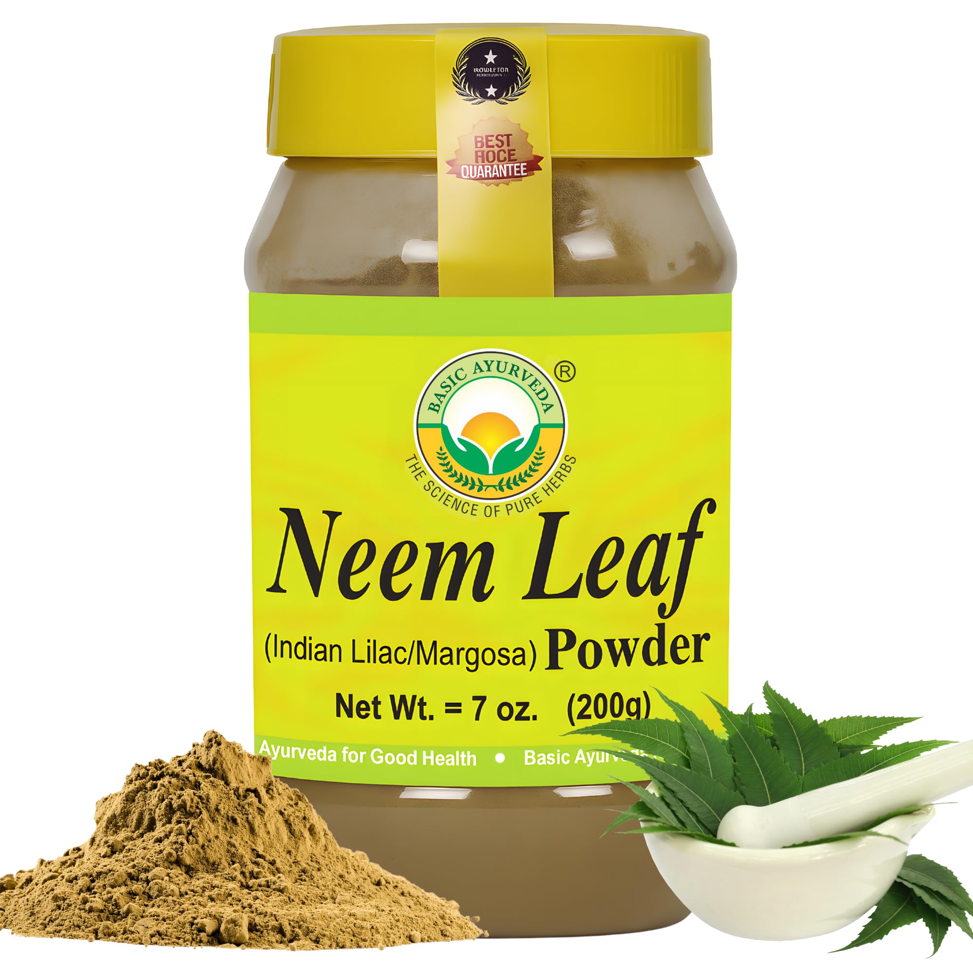 BASIC AYURVEDA Neem Leaf Powder 7.05 Oz (200g) | Pure & Natural Herbal Supplement for Skin, Hair & Wellness | Acne Care | No Preservatives or Additives