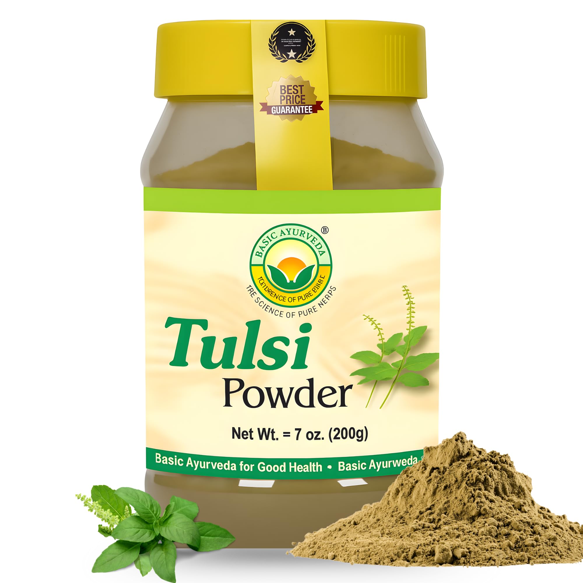 BASIC AYURVEDA Tulsi Powder 7.05 Oz (200g) | Holy Basil Leaf Powder for Tea, Skin Care & Hair | Supports Detox, Natural Energy, Daily Balance | Non-GMO, Vegan, Gluten-Free 7.05 Ounce (Pack of 1)