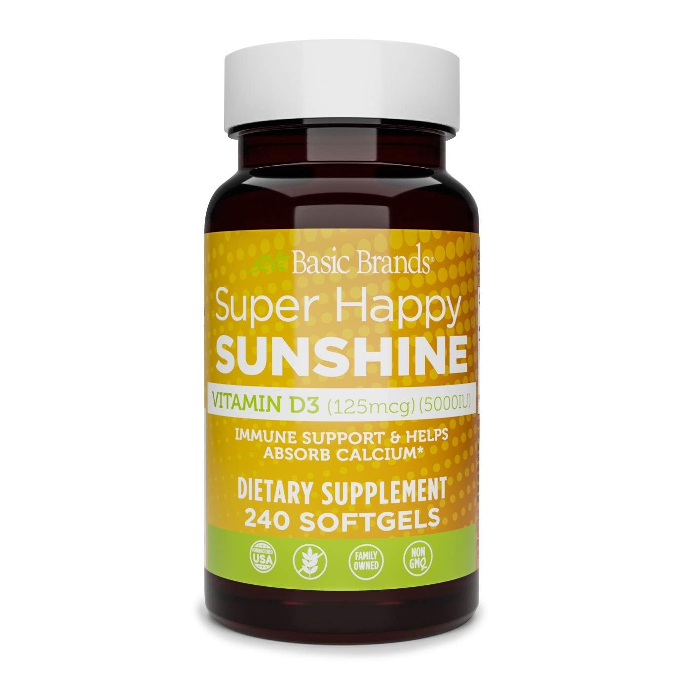 Basic Brands Super Happy Sunshine Vitamin D3 5000IU 240-count (Pack of 1) 240 Count (Pack of 1)