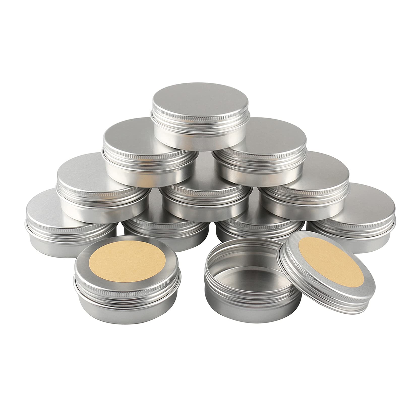 BasicPacking 24 Stück 60ml Silber Leere Rund Aluminiumdose mit Schraubdeckel Alu-Dose Aluminium Schraubdose Cremedose Kerzendosen Kosmetikdosen Blechdosen Aludose mit 24 Stück 50mm Aufkleber