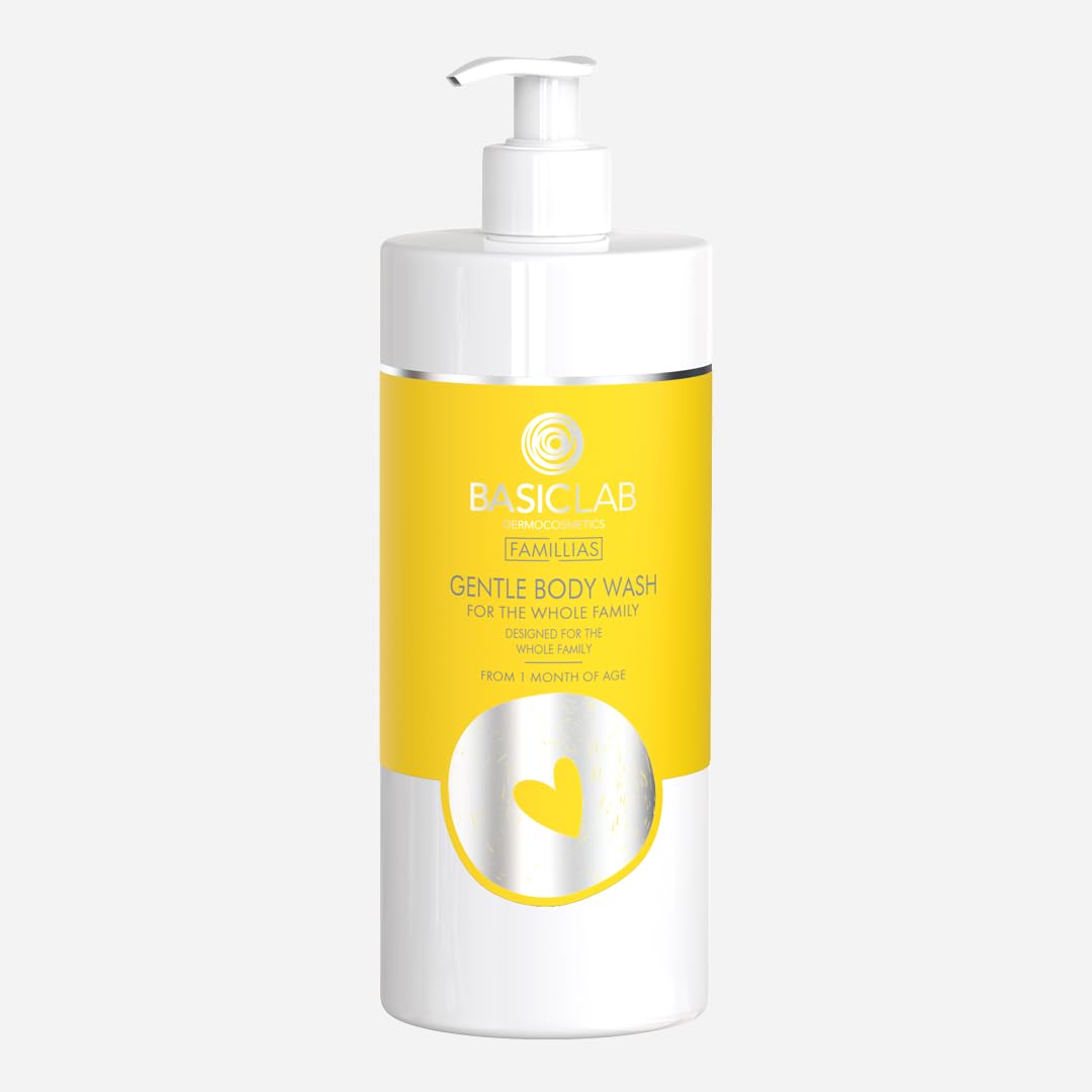 Basiclab Gentle gel for washing the body and scalp gently cleanses the skin, supporting the care of the skin's lipid barrier. The product does not contain soap and contains as many as 99 ingredients of natural origin. The mild cleansing substances on which the formulation is based do not dry the skin. Neutral pH. ACTION: Panthenol soothes irritations and helps improve hydration. Allantoin soothes the skin and reduces micro-irritations. Hyaluronic acid effectively moisturizes the skin. Biolin-P, as a prebiotic, renews the bacterial flora of the skin, making it stronger and more resistant to external factors. Aloe extract soothes irritations. Trehalose, which has strong hygroscopic properties, effectively moisturizes the skin. RESULTS: Gently cleansed skin of the entire body, without the feeling of tightness. Regenerated hydrolipid barrier. The skin is optimally moisturized and irritations are soothed. Restored smoothness and regained healthy appearance. SUITABLE FOR SKIN: sensitive, irritated, dry and very dry, normal, atopic, children from 1 month of age, the cleansing gel can be successfully used as the main product for cleansing the body, scalp and intimate areas. It can be used by breastfeeding or pregnant women. Vegan product. HOW TO USE: Take a small amount of delicate body wash gel into your hand, wash your body and scalp, creating foam, and then rinse with 99 ingredients of natural origin.basiclab.BasicLab Delikatny zel do mycia ciala i glowy dla calej rodziny 500ml Basiclab Delikatny zel do mycia ciala i skóry glowy lagodnie oczyszcza skóre wspomagajac pielegnacje bariery lipidowej skóry. Product nie zawiera mydla i posiada az 99 skladników pochodzenia naturalnego. Lagodne substje myjace, na których oparta jest formulacja, nie wysuszaja skóry. Neutralne pH. DZIALANIE: Pantenol lagodzi podraznienia i wspomaga poprawe nawilzenia. Alantoina koi skóre i redukuje mikropodraznienia. Kwas hialuronowy efektywnie nawilza skóre. Biolin-P jako prebiotyk odnawia flore bakteryjna skóry, dzieki czemu jest ona wzmocniona i bardziej odporna na dzialanie czynników zewnetrznych. Ekstrakt z Aloesu lagodzi podraznienia. Trehaloza posiadajaca silne wlasciwosci higroskopijne skutecznie nawilza skóre. REZULTATY: Delikatnie oczyszczona skóra calego ciala, bez uczucia sciagniecia. Zregenerowana bariera hydrolipidowa. Skóra optymalnie nawilzona, podraznienia zlagodzone. Przywrócona gladkosc i odzyskany zdrowy wyglad. ODPOWIEDNI DLA SKÓRY : wrazliwej podraznionej suchej i bardzo suchej normalnej atopowej dzieci od 1-miesiaca zycia zel do mycia z powodzeniem mozna stosowac jako glówny produkt do octrooi zyszczanan ia ciala, skóry glowy oraz miejsc intymnych. Moze byc stosowany przez kobiety karmiace piersia lub w ciazy. Product weganski. SPOSÓB UZYCIA: Nabierz na dlon niewielka ilosc delikatnego zelu do mycia ciala, umyj cialo i skóre glowy doprowadzajac do wytworzenia piany, a nastepnie splucladnie z. 99 skladników pochodzenia naturalnego.basiclab.