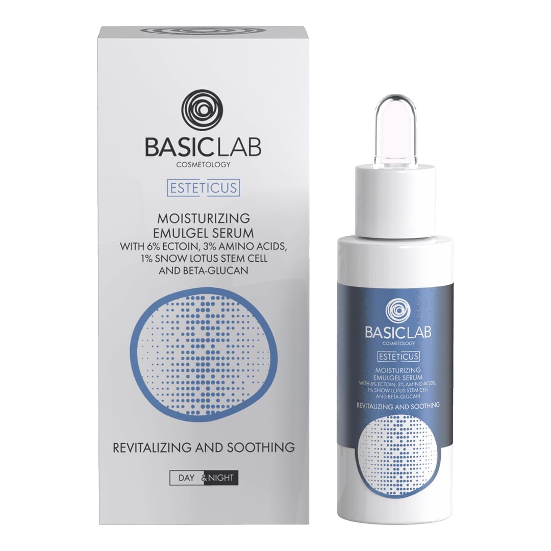 A specialized moisturizing serum in the form of an emu gel with 6 ectoine, 3 amino acids, snow lotus stem cells and beta-glucan completely revitalizes and soothes dry, dehydrated and irritated skin. The synergistic combination of active ingredients strengthens the skin's natural protective barrier, accelerates the regeneration processes of the epidermis and provides long-lasting hydration, which positively affects the improvement of skin tension and elasticity. The serum is intended for day and night use. Use: apply a few drops of serum to the face, neck and décolleté, avoiding the eyes. Apply morning and or evening to cleansed and dry skin, as needed. It can be used by lactating or pregnant women. The serum is fragrance-free, the slightly noticeable note is due to its composition.The serum is intended for day and night use. The synergistic combination of active ingredients strengthens the skin's natural protective barrier, accelerates the regeneration processes of the epidermis and provides long-lasting hydration, which positively affects the improvement of skin tension and elasticity. A specialized moisturizing serum in the form of an emu gel with 6 ectoine, 3 amino acids, snow lotus stem cells and beta-glucan completely revitalizes and soothes dry, dehydrated and irritated skin.Basiclab Vochtinbrengend emulgelserum met 6 ectoïne, 3 aminozuren, 1 sneeuw lotus stamcel en bèta - glucan 30ml Een gespecialiseerd hydraterend serum in de vorm van een emu-gel met 6 ectoïne, 3 aminozuren, sneeuwlotusstamcellen en bèta-glucaan revitaliseert de droge, uitgedroogde en geïrriteerde huid volledig en kalmeert het. De synergetische combinatie van actieve ingrediënten versterkt de natuurlijke beschermende barrière van de huid, versnelt de regeneratieprocessen van de epidermis en zorgt voor langdurige hydratatie, wat de verbetering van de huidspanning en elasticiteit positief beïnvloedt. Het serum is bedoeld voor dag en nacht gebruik. Gebruik: breng een paar druppels serum aan op gezicht, hals en decolleté, vermijd de ogen. Breng 's ochtends en of 's avonds aan op gereinigde en droge huid, indien nodig. Het kan worden gebruikt door borstvoeding of zwangere vrouwen. Het serum is geurvrij, de licht waarneembare noot is te wijten aan de samenstelling.Het serum is bedoeld voor dag en nacht gebruik. De synergetische combinatie van actieve ingrediënten versterkt de natuurlijke beschermende barrière van de huid, versnelt de regeneratieprocessen van de epidermis en zorgt voor langdurige hydratatie, wat de verbetering van de huidspanning en elasticiteit positief beïnvloedt. Een gespecialiseerd hydraterend serum in de vorm van een emu-gel met 6 ectoïne, 3 aminozuren, sneeuwlotusstamcellen en bèta-glucaan revitaliseert de droge, gedehydrateerde en geïrriteerde huid volledig en kalmeert het.