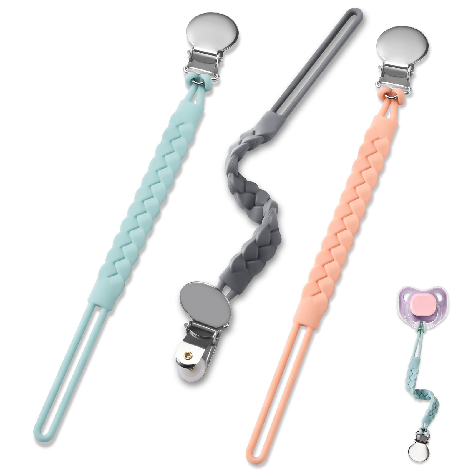The multifunctional and cute silicone pacifier clip is perfect for your little boy. Product features 1. This baby pacifier holder is a universal leash with all types of nullters and bite rings. 2. The total length of the baby pacifier clip is a total of 20 x 2 cm. 3. You can easily attach the pacifier holder to the baby clothes to keep them nearby and also prevent the pacifier from falling into the dirt or is lost. 4. Made of high quality, durable material.BPA-free stainless steel clip will never rust or discolour.Gentle to the clothes and skin of your baby!Easy to open and close with one hand. Application instructions: 1. Thread the pacifier holder through a pacifier handle or a pacifier hole. 2. Push the clip through the loop into the cord. 3. Attach the clip to the baby's clothing.Open and close the clip by folding the clip part, you can easily clamp it. CLEANING: Wash before use. 2. Wash in warm soapy water.Rinse well with clear water. 3. dry in the air.Do not clean chemically.Do not bleach and iron warm. Warning: 1. Please check thoroughly before each use. 2. Make sure that you secure them safely to the clothes and throw them away when part of the pacifier clip is worn out or not securely attached. 3. Never extend or fasten the tape. Package included: 3 x pacifier clip. 1 x storage bag Guarantee & customer service We take care of every customer problem, please do not hesitate to contact us if you have any questions, we will answer within 24 hours. Click on ""In the shopping cart"" to buy now!suitable for most pacifier brands and toothing pacifiers.Completely corresponds to the enforcement of the Sharp Edge and Point Toy Regulation.The clips are made of high -quality stainless steel;Safe for babies and clothes, no rust and no damage to clothing.The lines are made of high -quality silicone, easy to clean with a damp towel, boiling water or steam.Basicslife Schnuller-Clips have three colorful lines with high-quality stainless steel clips;Suitable for all branded pacifiers or tooth toys.The pacifier clips are made of 100 % silicone, soft, latex-free, lead-free and phthalate-free.Is used as a bite ring for babies for teething.High -strength silicone, soft and elastic, offers better use experience.Basiclife Schnuller clips simply attach the pacifier to the baby's clothing, do not harm your baby's clothing and never fall down.Prevent pacifier or tooth toys from being lost.Keep pacifier, bite rings and toys cleanly clean, far from dust and stains.BPA-free stainless steel clips;Safe for the baby's teeth when you chew on it.Attached to the clothing, no rust and no damage to the clothing. Der multifunktionale und niedliche Silikon-Schnullerclip ist perfekt für Ihren kleinen Jungen. Produktmerkmale 1.Dieser Baby-Schnullerhalter ist eine universelle Leine mit allen Arten von Schnullern und Beißringen. 2. Die Gesamtlänge des Baby-Schnuller-Clips beträgt insgesamt 20 x 2 cm. 3. Sie können den Schnullerhalter einfach an der Babykleidung befestigen, um sie in der Nähe zu halten, und verhindern auch, dass der Schnuller in den Schmutz fällt oder verloren geht. 4. Aus hochwertigem, langlebigem Material. BPA-freier Edelstahlclip wird niemals rosten oder verfärben. Sanft zur Kleidung und zur Haut Ihres Babys! Einfaches Öffnen und Schließen mit einer Hand. Anwendungshinweise: 1. Fädeln Sie die Schnuller-Halterung durch einen Schnullergriff oder ein Schnullerloch. 2. Schieben Sie den Clip durch die Schlaufe in die Schnur. 3. Befestigen Sie den Clip an der Kleidung des Babys. Öffnen und schließen Sie den Clip durch Falten des Clip-Teils, Sie können ihn leicht einklemmen. REINIGUNG: Vor Gebrauch waschen. 2. In warmem Seifenwasser waschen. Mit klarem Wasser gut ausspülen. 3. An der Luft trocknen. Nicht chemisch reinigen. Nicht bleichen und warm bügeln. Warnhinweis: 1. Bitte vor jedem Gebrauch gründlich prüfen. 2. Stellen Sie sicher, dass Sie sie sicher an der Kleidung befestigen und wegwerfen, wenn ein Teil des Schnuller-Clips abgenutzt oder nicht sicher befestigt ist. 3. Nie das Band verlängern oder befestigen. Paket enthalten: 3 x Schnuller-Clip. 1 x Aufbewahrungstasche Garantie & Kundenservice Wir kümmern uns um jedes Kundenproblem, bitte zögern Sie nicht, uns zu kontaktieren, wenn Sie Fragen haben, wir werden innerhalb von 24 Stunden antworten. Klicken Sie auf ""In den Warenkorb"", um jetzt zu kaufen!Passend für die meisten Schnullermarken und Zahnungsschnuller. Entspricht vollständig der Durchsetzung der Sharp Edge and Point Toy Verordnung. Die Clips sind aus hochwertigem Edelstahl; sicher für Babys und Kleidung, kein Rost und keine Beschädigung der Kleidung. Die Leinen sind aus hochwertigem Silikon, leicht zu reinigen mit einem feuchten Handtuch, kochendem Wasser oder Dampf. Basicslife Schnuller-Clips haben drei bunte Leinen mit hochwertigen Edelstahl-Clips; passend für alle Marken-Schnuller oder Zahnspielzeuge. Die Schnuller-Clips sind aus 100 % Silikon, weich, latexfrei, bleifrei und phthalatfrei. Wird als Beißring für Babys zum Zahnen verwendet. Hochfestes Silikon, weicher und elastischer, bietet eine bessere Nutzungserfahrung. BASICSLIFE Schnuller-Clips befestigen den Schnuller einfach an der Kleidung des Babys, schaden der Kleidung Ihres Babys nicht und fallen nie herunter. Verhindern Sie, dass Schnuller oder Zahnspielzeug verloren gehen. Hält Schnuller, Beißringe und Spielzeug effektiv sauber, fern von Staub und Flecken. BPA-freie Edelstahl-Clips; sicher für die Zähne des Babys, wenn sie darauf kauen. an der Kleidung befestigt, kein Rost und keine Beschädigung der Kleidung.BASICSLIFE Silikon-Schnuller-Clip, BPA-freie Silikon-Schnuller, Leinen für Beißring, Spielzeug oder Beruhigung, hält Schnuller sauber und passt auf alle Schnuller, Baby-Beißspielzeuge