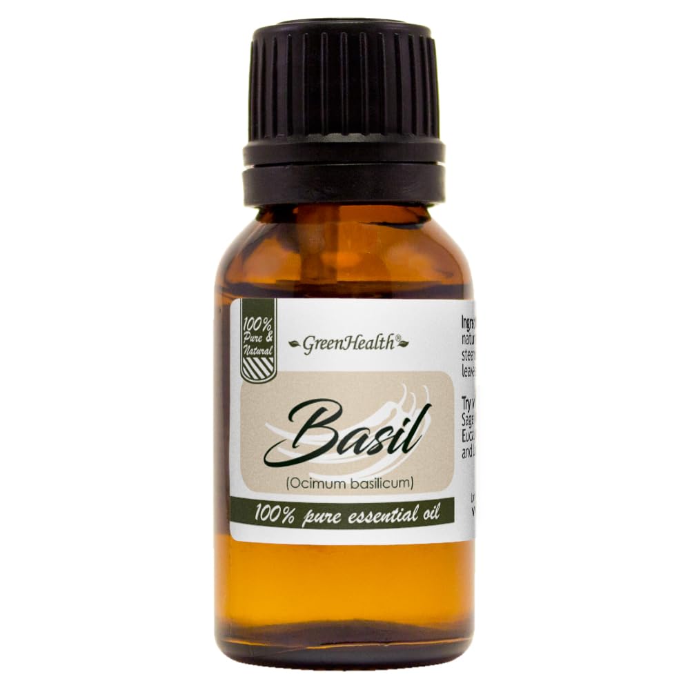 Try all of our 100 pure, high quality essential oils!. Every single one of our oils has a money-back guarantee! If you are not satisfied with your product for any reason, simply notify us and we will work with you to ensure that you receive a refund or an exchange. We keep this guarantee as a show of gratitude for our customers, and we will do our best to keep you satisfied!. All of our oils are 100 pure, just like when you buy 100 pure orange juice at the supermarket. They contain nothing else than the essence of the plant they are extracted from and the oil itself, and are never diluted or watered down. Our 100 pure high quality oils are great for aromatherapy, baths, cold compresses, facial steams, massage, and diffusers. Feel the benefit of wholly natural essential oils!. GreenHealth Basil is 100 pure natural essential oil, steam distilled from Ocimum basilicum leaves. You can try blending it with Bergamot, Clary Sage, Clove Bud, Lime, Eucalyptus, Juniper, Lemon, Neroli, and Rosemary.