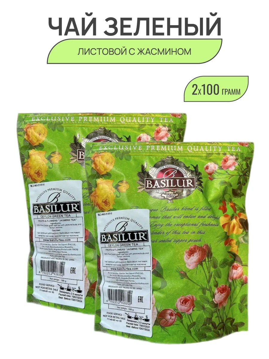 Чай листовой байховый листовой Basilur Jasmine Tea s с лепестками жасмина нежно ароматизирован жасмином.