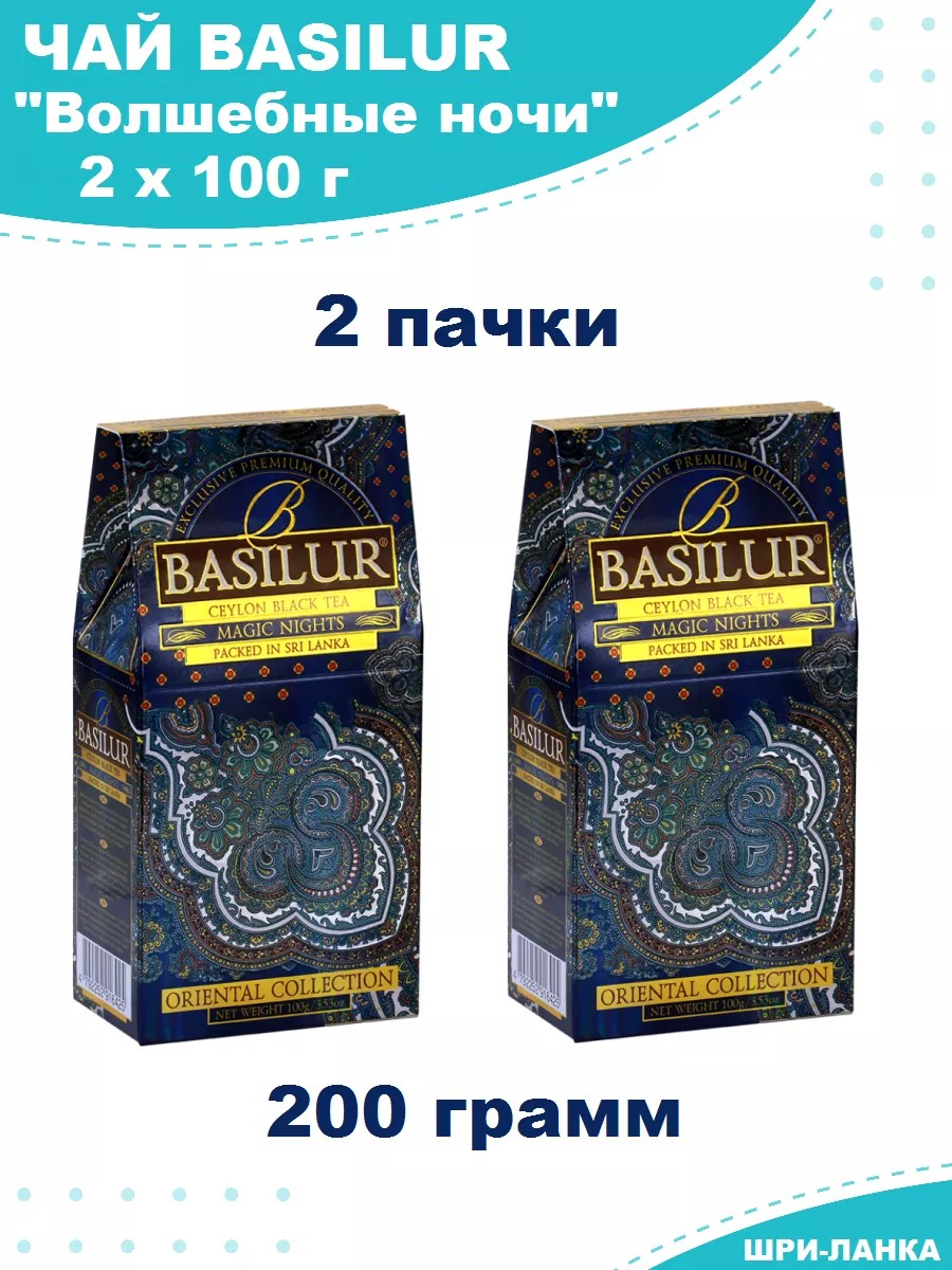 Чай листовой черный цейлонский Basilur "Восточная коллекция" Волшебные ночи - это удивительный напиток, который позволяет окунуться в атмосферу загадочного и мистического Востока. Он изготовлен из отборных листьев черного чая, выращенных на западе Шри-Ланки, в провинции Нувара Элия - одном из самых известных районов для выращивания чая в мире.