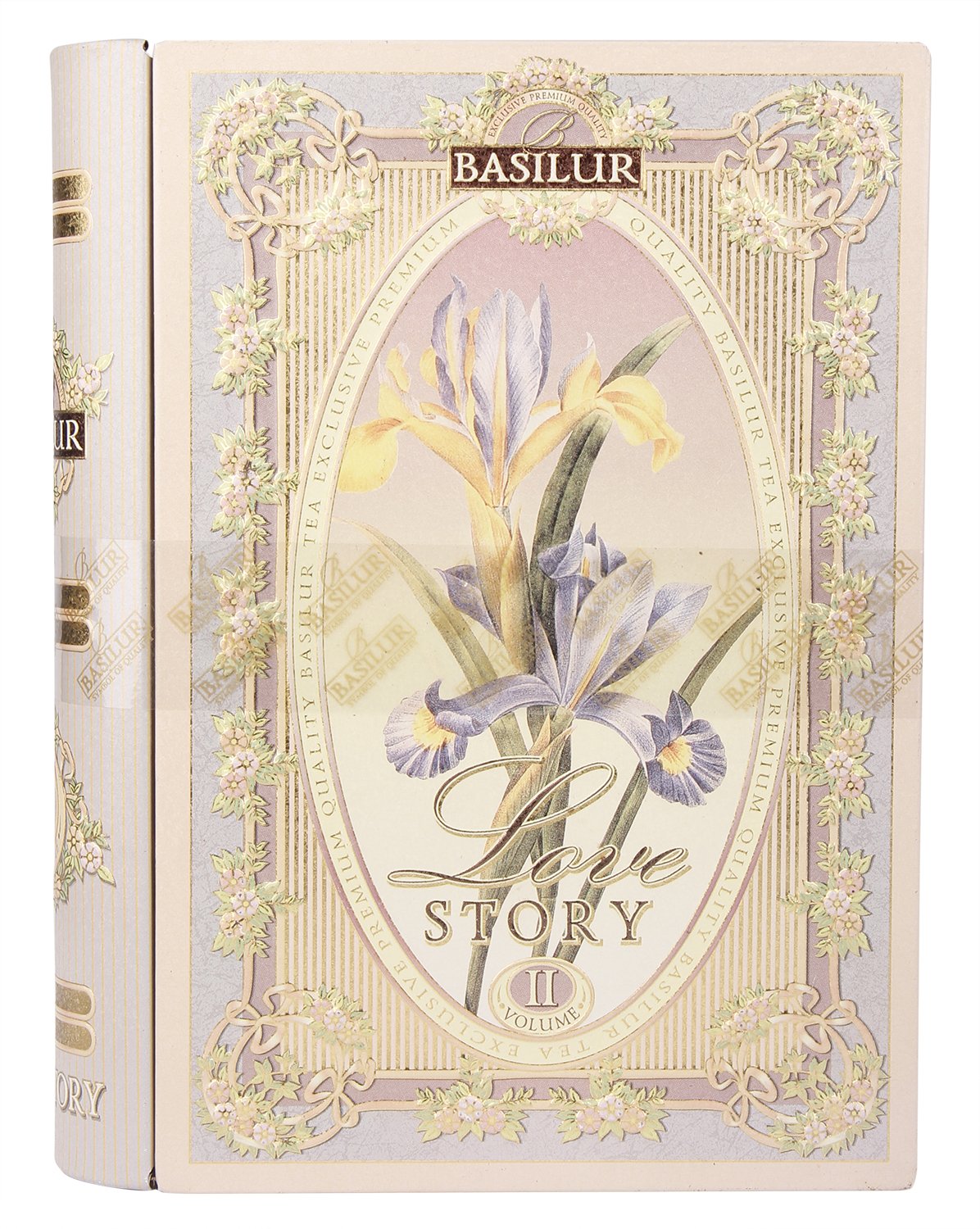 Basilur Pure Ceylon Black and Green leaf tea with amaranth, almond, rose "Love Story Volume 2" in metal caddy, 100 gr