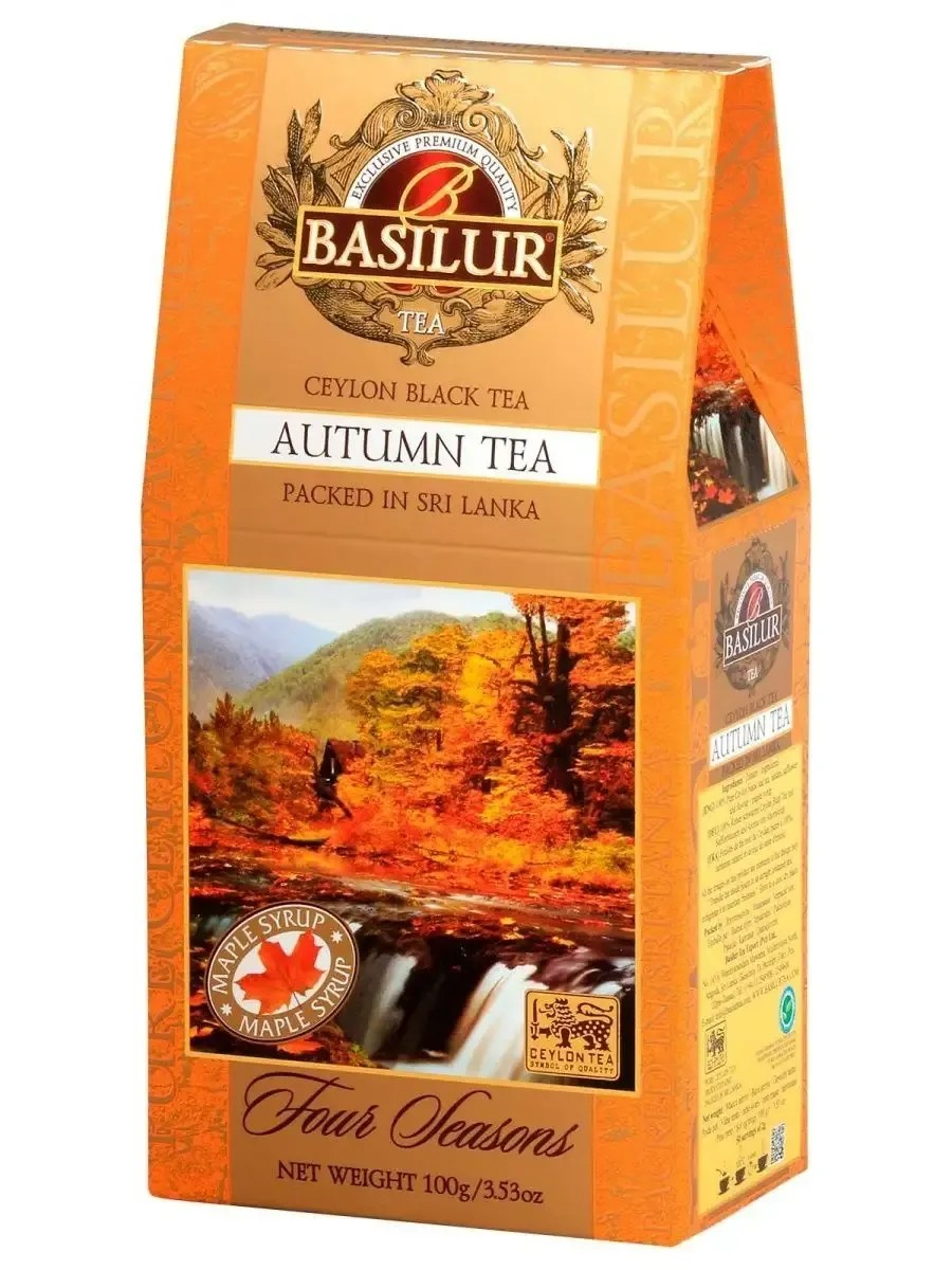 Чай Basilur Осенний (Autumn). Прежде, чем природа укроется зимним снегом, наступает прекрасная осенняя пора, когда всё сверкает и переливается восхитительными красками. Великолепный вкус цейлонского чая Basilur с ароматом кленового сиропа и лепестками сафлора подарит вам яркое, как листок клёна, впечатление праздника.