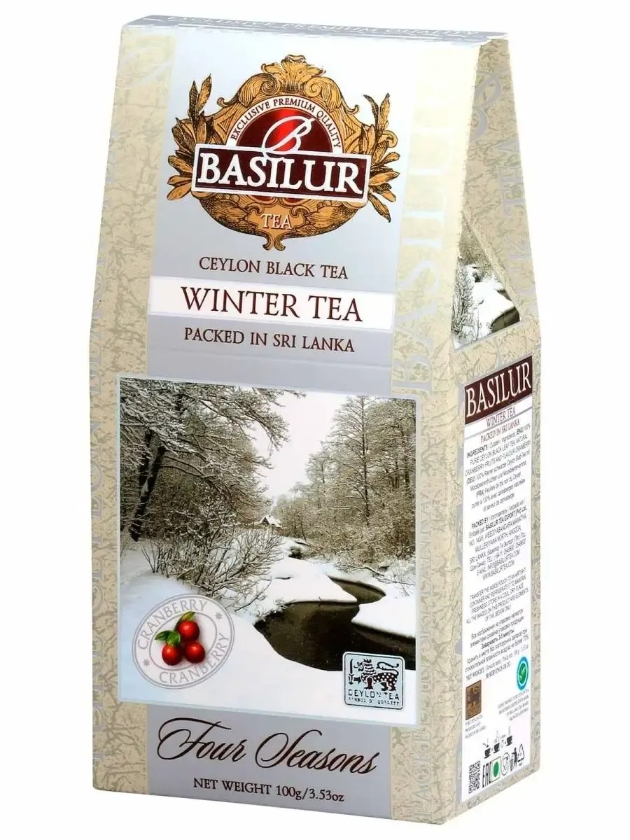 Чай Basilu "Зимний" (winter) из коллекции ВРЕМЕНА ГОДА хит продаж вне зависимости от сезона! Его уникальный вкус черного цейлонского чая с добавлением крупноплодной канадской клюквы. Являясь богатейшим источником полезных веществ, клюква издревле считается ягодой, укрепляющей иммунитет. Поэтому чай Базилур "Зимний" - прекрасный выбор для согревающего чаепития прохладными вечерами. Состав: чай черный цейлонский байховый крупнолистовой, с ягодами и ароматизатором клюквы.
