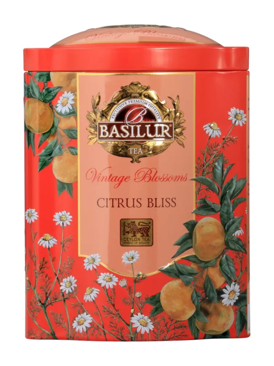 Чай черный цейлонский байховый листовой Basilur Citrus Bliss в жестяной банке- премиальный продукт с добавлением цветов ромашки и натуральным ароматизатором мандарина. Базилюр Цитрусовое наслаждение - натуральный чай с ароматными нотками мандарина и неповторимым и глубоким вкусом. В подарок или презент на любой праздник!