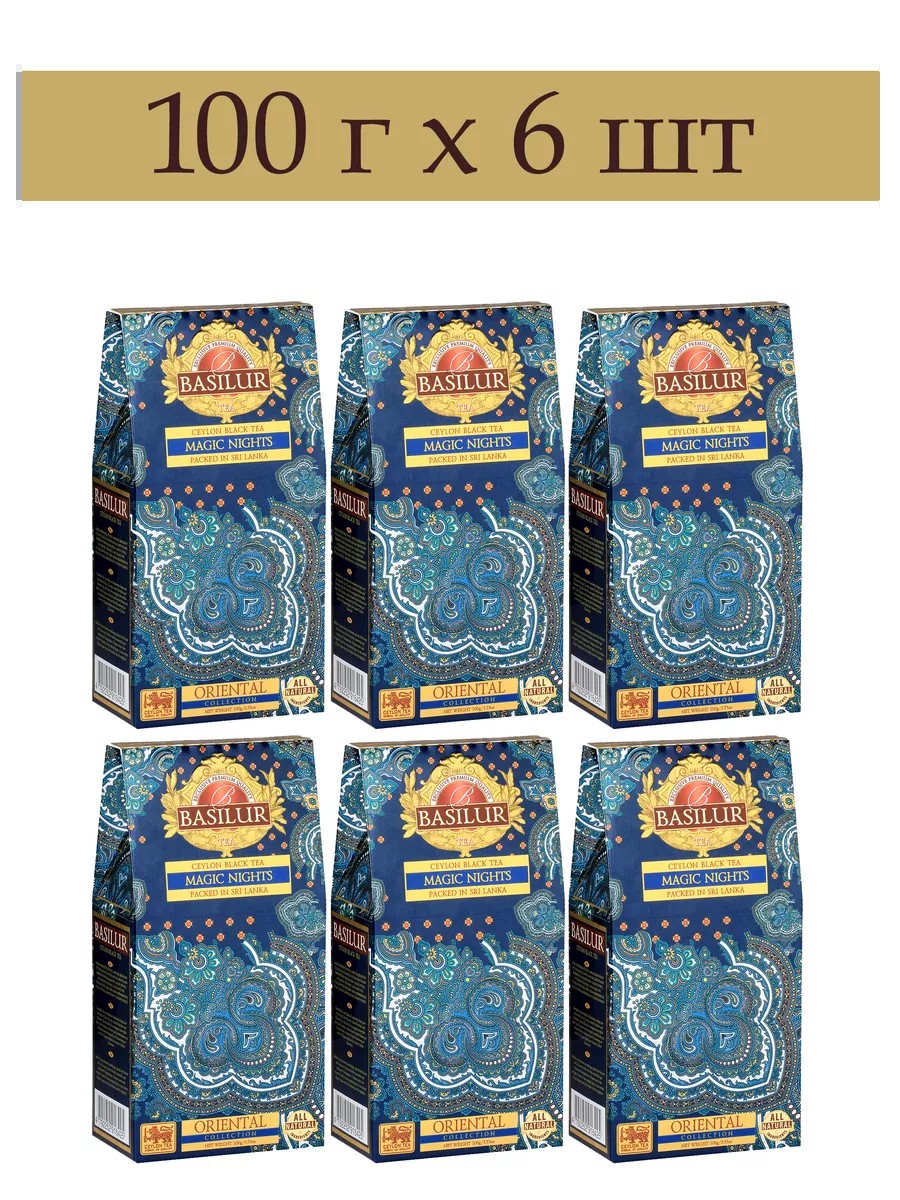 Basilur Чай черный листовой набор Волшебные ночи 100 г х 6 шт