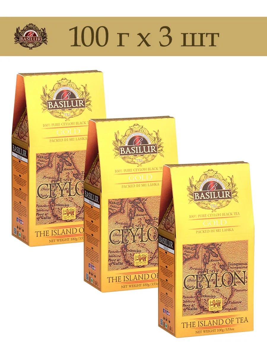 | Полное наименование товара | Набор чай черный Basilur коллекция Чайный остров Цейлон "Золотой", 100 г х 3 |