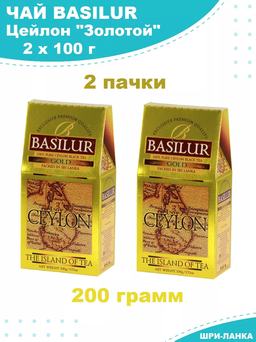 Чай черный крупнолистовой Basilur Gold (Базилур Золотой). Коллекция Ceylon the island of tea (Остров Цейлон) Великолепное сочетание чистого Цейлонского чая отличается насыщенным, богатым и нежным вкусом благодаря гладким и шелковистым листьям из лучших листьев Цейлона, Оранж Пеко. Это исключительный сорт крупнолистового цейлонского чая, который сочетает в себе силу и полноту вкуса с тонкими и легкими оттенками, а благородный золотистый цвет его настоя делает чай BASILUR "GOLD" поистине драгоценным.