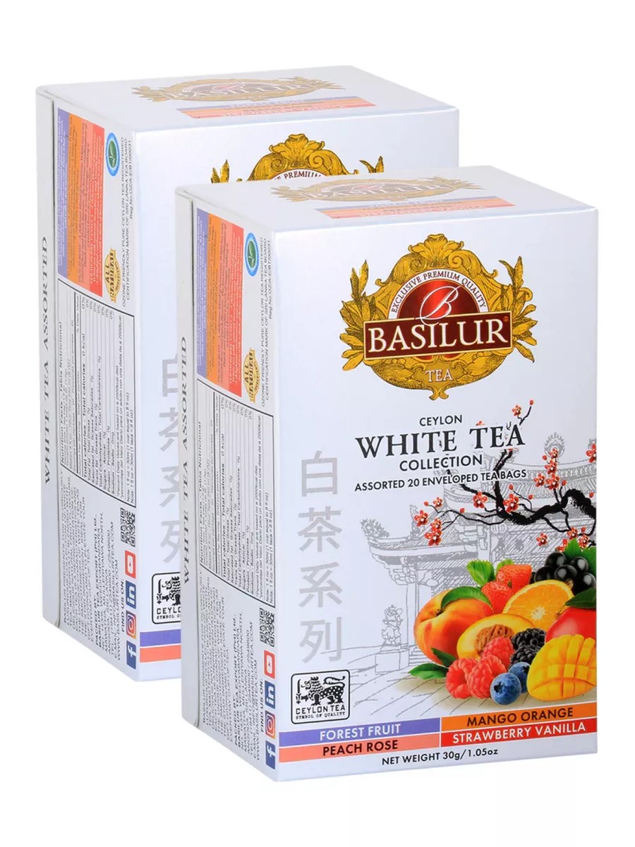 Чай в пакетиках Basilur ассорти белого чая состоит из 4-х вкусов. В составе:
