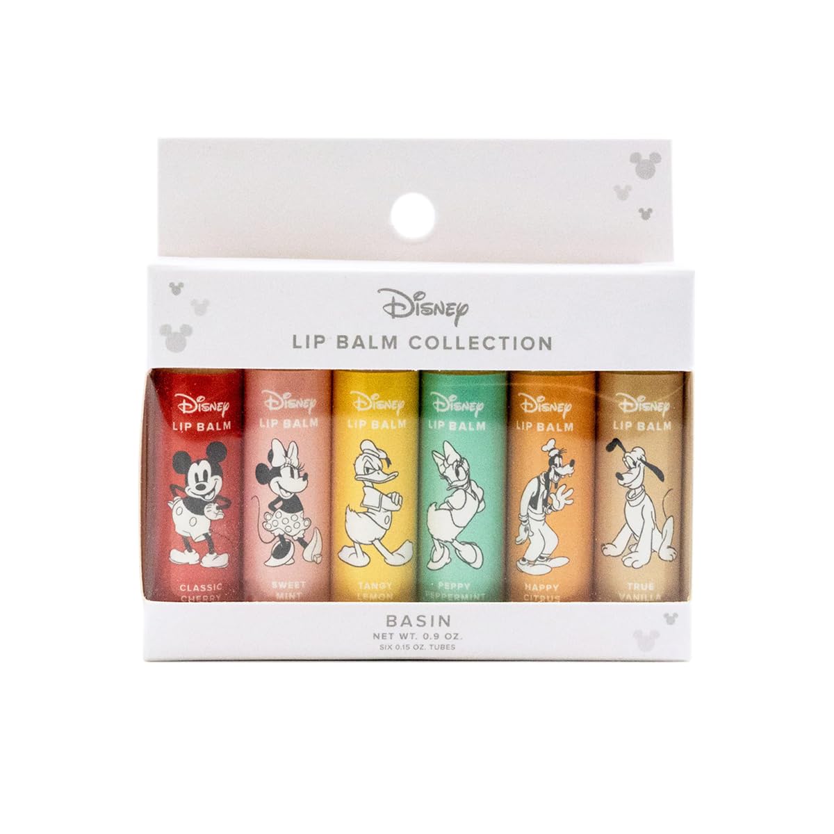 Basin Disney Mickey Mouse & Friends Lip Balm Collection | 6 Pack Classic Flavors (Cherry Mint Lemon Peppermint Citrus Vanilla) | Organic Clean Beauty Official Disney Made in USA Mickey & Friends