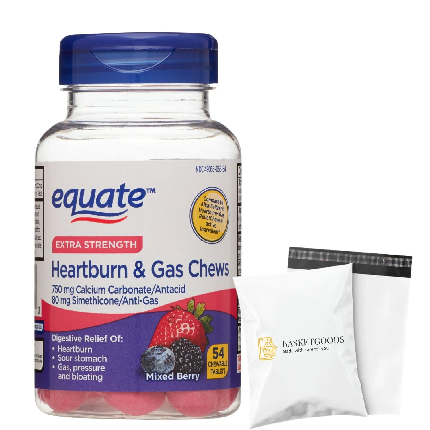 BASKETGOODS Equate Antacid and Anti Gas-Extra Strenght Tablets chewable Mixed Berry Flavor 54 Count (Pack of 1) Set by Basket Goods
