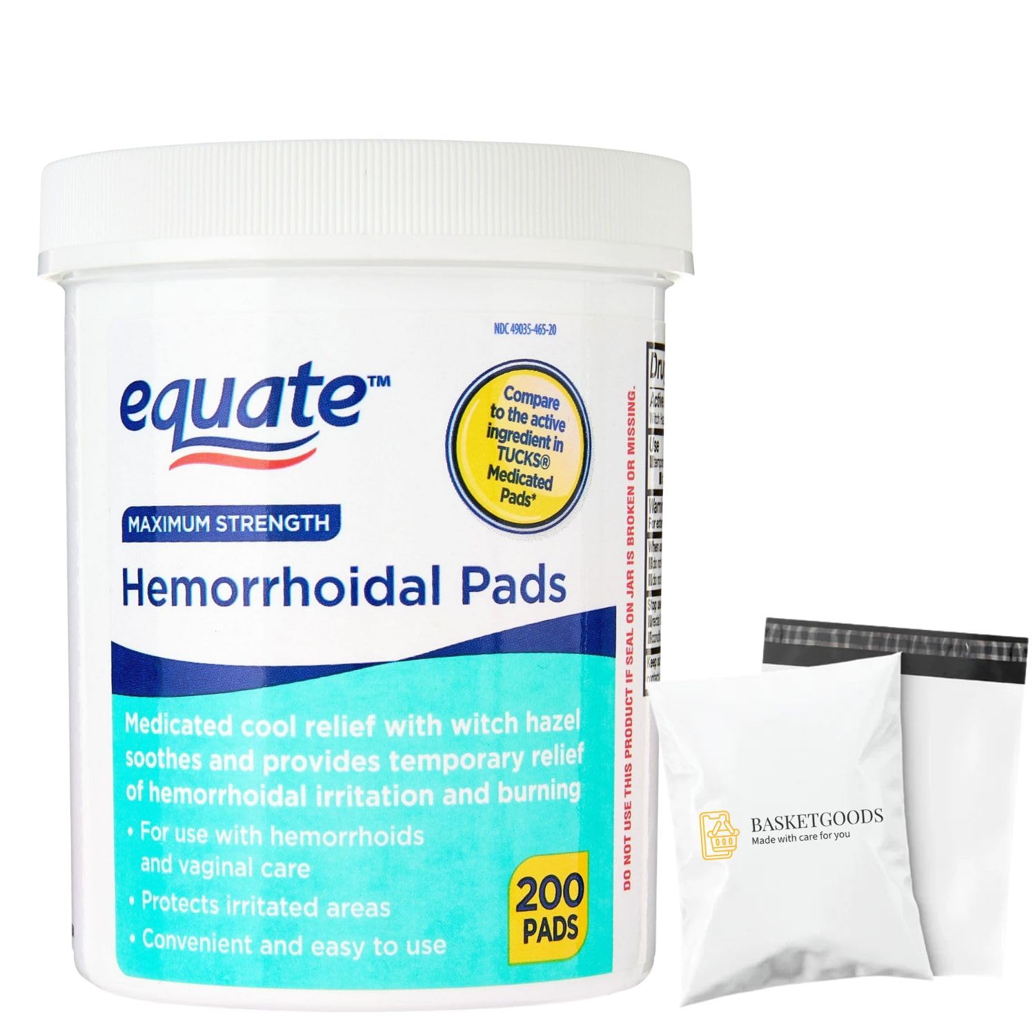 BASKETGOODS Equate Hemorrhoid Wipes Maximum Strength Cool Relief 200 Count (Pack of 1) Set by Basket Goods