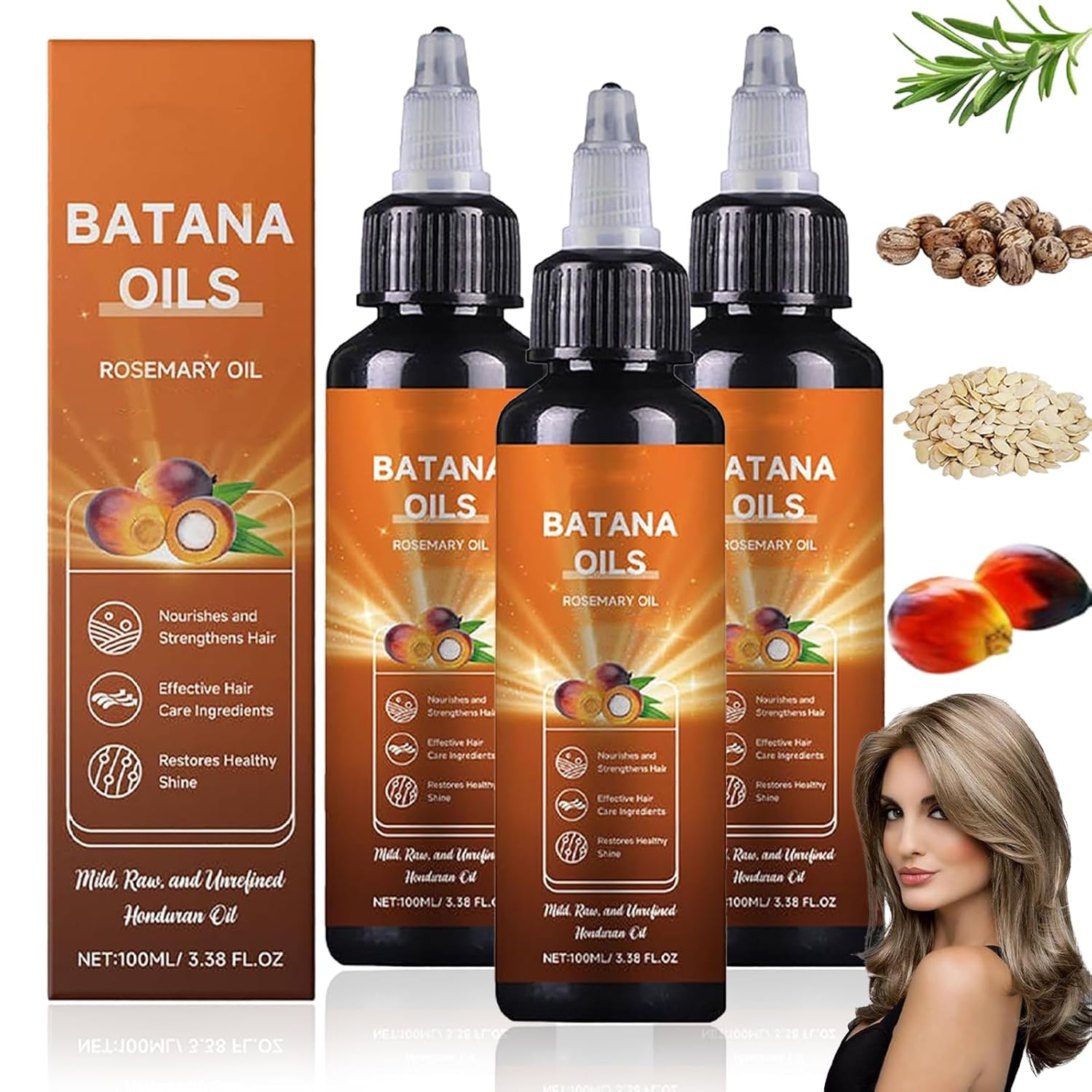 Specification: Name: Batana Oil All-in-One Liquid Net Content: 100ml Package Contents: 1 2 3pcs Batana Oil All-in-One Liquid NOTE 1. Due to the display and light, please refer to the actual product received. 2. Due to manual measurement, please allow an error of 1-2cm.Easy Application Simply apply a generous amount to your scalp and massage for 4-6 minutes for optimal results, safe and effective for both men and women, this nourishing oil works perfectly with all hair types, from straight to curly, providing long-lasting care and shine. Revitalize Your Hair Say goodbye to dry, damaged hair, dyes. All-in-one liquid batana oil is designed to give your hair the best care possible - from root to tip. Deep Nourishment for Hair and Scalp Infused with unrefined batana oil, rosemary oil, castor oil and pumpkin seed oil, this blend provides intense moisture and nourishment to revitalize your scalp and hair. Natural Moisturizing 4 in 1 liquid batana oil deeply moisturizes the scalp and hair, reduces dryness and frizz problems, while helping hair reduce split ends, making hair healthier and smoother. All-in-one Liquid Batana Oil Our batana oil penetrates deep into the hair shaft, replenishing lost moisture and repairing damage from within, leaving your hair stronger and more resilient. It can restore shine, softness and vitality to even the most damaged strands. Spécification : Nom : Huile de Batana liquide tout-en-un Contenu net : 100 ml Contenu de l'emballage : 1 2 3 pièces Huile de Batana liquide tout-en-un REMARQUE 1. En raison de l'affichage et de la lumière, veuillez vous référer au produit réel reçu. 2. En raison de la mesure manuelle, veuillez prévoir une erreur de 1 à 2 cm.Application facile Appliquez simplement une quantité généreuse sur votre cuir chevelu et massez pendant 4 à 6 minutes pour des résultats optimaux, sûre et efficace pour les hommes et les femmes, cette huile nourrissante fonctionne parfaitement avec tous les types de cheveux, des cheveux raides aux bouclés, offrant un soin et une brillance durables. Revitalisez vos cheveux Dites adieu aux cheveux secs et abîmés, aux teintures. L'huile de batana liquide tout-en-un est conçue pour donner à vos cheveux les meilleurs soins possibles - de la racine aux pointes. Nourriture profonde pour les cheveux et le cuir chevelu Infusé d'huile de batana non raffinée, d'huile de romarin, d'huile de ricin et d'huile de pépins de courge, ce mélange fournit une hydratation et une nutrition intenses pour revitaliser votre cuir chevelu et vos cheveux. Hydratation naturelle L'huile de batana liquide 4 en 1 hydrate en profondeur le cuir chevelu et les cheveux, réduit les problèmes de sécheresse et de frisottis, tout en aidant les cheveux à réduire les pointes fourchues, rendant les cheveux plus sains et plus lisses. Huile de Batana liquide tout-en-un Notre huile de batana pénètre profondément dans la tige capillaire, reconstituant l'humidité perdue et réparant les dommages de l'intérieur, laissant vos cheveux plus forts et plus résistants. Il peut restaurer la brillance, la douceur et la vitalité même aux mèches les plus abîmées.