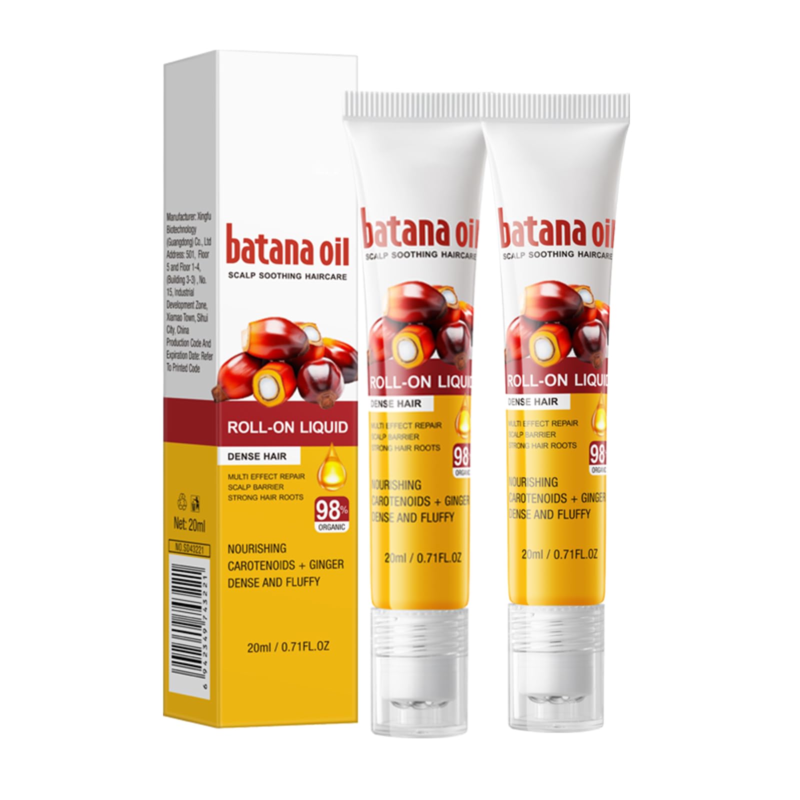Batana Soothing rollerball for thick hair INSTRUCTIONS FOR USE Simply roll the balls over your scalp and hair to provide a soothing and moisturizing treatment. SAFETY WARNING See moreComplete and safe for scalp: It provides a soothing and nourishing experience to ensure your scalp feels comfortable and cared for. Enjoy the benefits of a luxurious, conditioning treatment that enhances your natural hair beauty. Long-lasting conditioning: Enjoy long-lasting conditioning effects with batana scalp balls. The formula is designed to penetrate deep into the hair shaft and deliver consistent hydration and nourishment. Whether you want to style your hair or just maintain your health, these roller balls provide reliable results. IMPROVES HAIR HEALTH: Regular use of batana scalp, which is dense hair conditioning balls soothing, can improve the overall health of your hair. The conditioning formula helps reduce dryness, frizz and breakage and promote stronger, healthier hair. Easy to Apply: The easy-to-use roller balls allow for precise application to ensure even distribution of the conditioning formula. Simply roll the balls over your scalp and hair to provide a soothing and moisturizing treatment. This method guarantees a problem-free usage process. Soothing and Moisturizing Formula: Batana hair conditioning roller balls are formulated with a soothing and moisturizing blend of natural ingredients. These roller balls help to soothe an irritated scalp while providing deep hydration for your hair.Batana Scalp Verzachtende Dense Hair Conditioning Rollers - 2 stuks - Organische haarolie voor snellere haargroei, sterkere wortels en minder haaruitval - voor alle haartypes - voedende haarolie Batana Verzachtende rollerbal voor dik haar GEBRUIKSAANWIJZING Rol gewoon de ballen over je hoofdhuid en haar om een rustgevende en hydraterende behandeling mogelijk te maken. VEILIGHEIDSWAARSCHUWING Meer bekijkenHelemaal en veilig voor hoofdhuid: het biedt een rustgevende en voedzame ervaring om ervoor te zorgen dat je hoofdhuid comfortabel en verzorgd voelt. Geniet van de voordelen van een luxe, conditionerende behandeling die je natuurlijke haarschoonheid verbetert. Duurzame conditionering: geniet van langdurige conditioneringseffecten met batana-hoofdhuidballen. De formule is zo ontworpen dat hij diep in de haarschacht doordringt en een consistente hydratatie en voeding levert. Of je nu je haar wilt stylen of gewoon je gezondheid wilt behouden, deze rolballen bieden betrouwbare resultaten. VERBETERT DE HAARGEZONDHEID: regelmatig gebruik van batana-hoofdhuid, die dichte haarconditioneringsballen kalmerend zijn, kan de algehele gezondheid van je haar verbeteren. De conditioneringsformule helpt droogheid, kroezen en breuk te verminderen en sterker, gezonder haar te bevorderen. Eenvoudig aan te brengen: de gebruiksvriendelijke rolballen maken een nauwkeurige toepassing mogelijk om een gelijkmatige verdeling van de conditioneringsformule te garanderen. Rol gewoon de ballen over je hoofdhuid en haar om een rustgevende en hydraterende behandeling mogelijk te maken. Deze methode garandeert een probleemloos gebruiksproces. Kalmerende en vochtinbrengende formule: Batana haarconditioneringsrolballen worden samengesteld met een rustgevende en hydraterende mix van natuurlijke ingrediënten. Deze rolballen helpen om een geïrriteerde hoofdhuid te kalmeren en tegelijkertijd een diepe hydratatie voor je haar te geven.