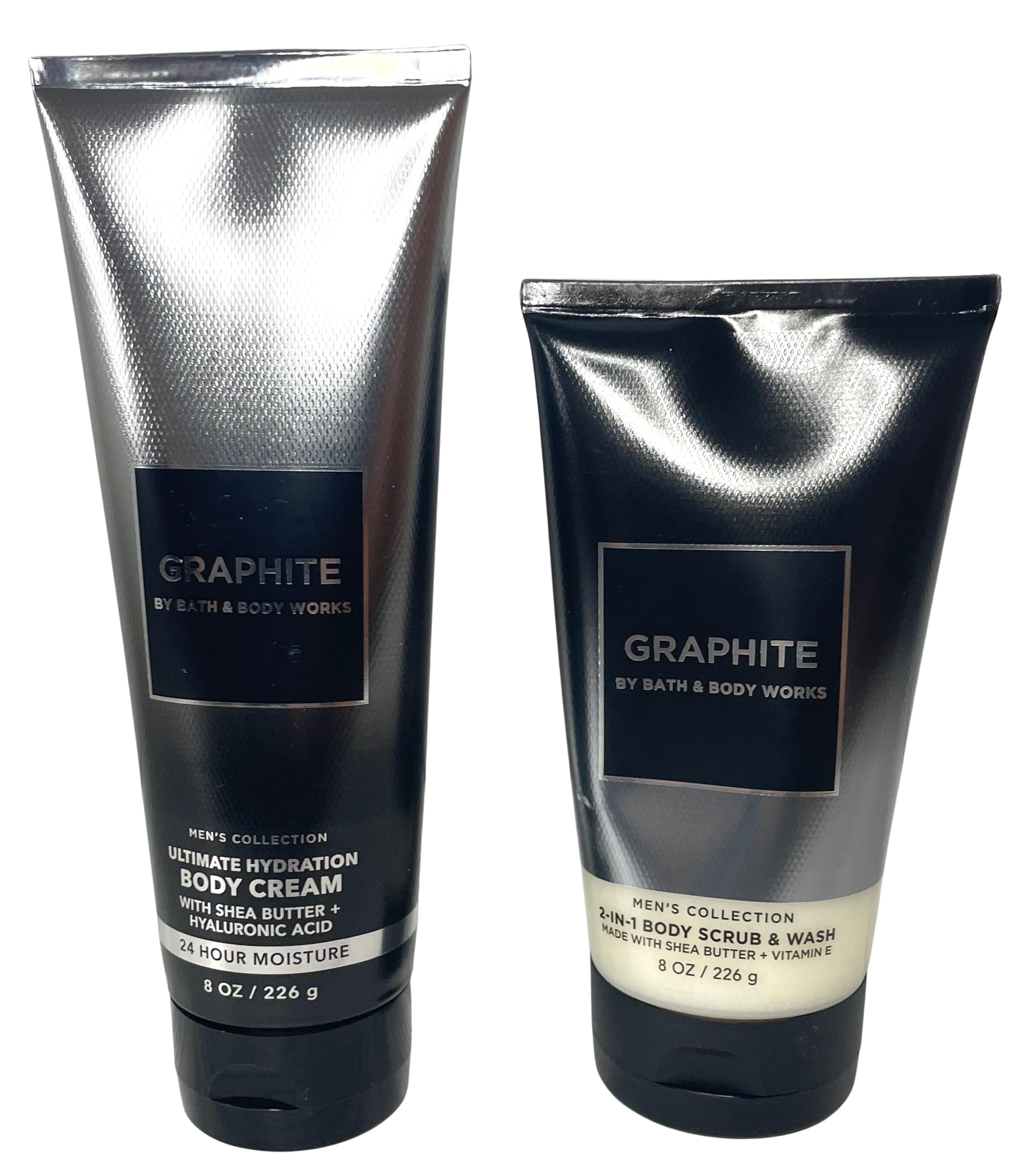 Bath and Body Works Men's Graphite Ultimate Hydration Body Cream and Body Scrub Set of 2
