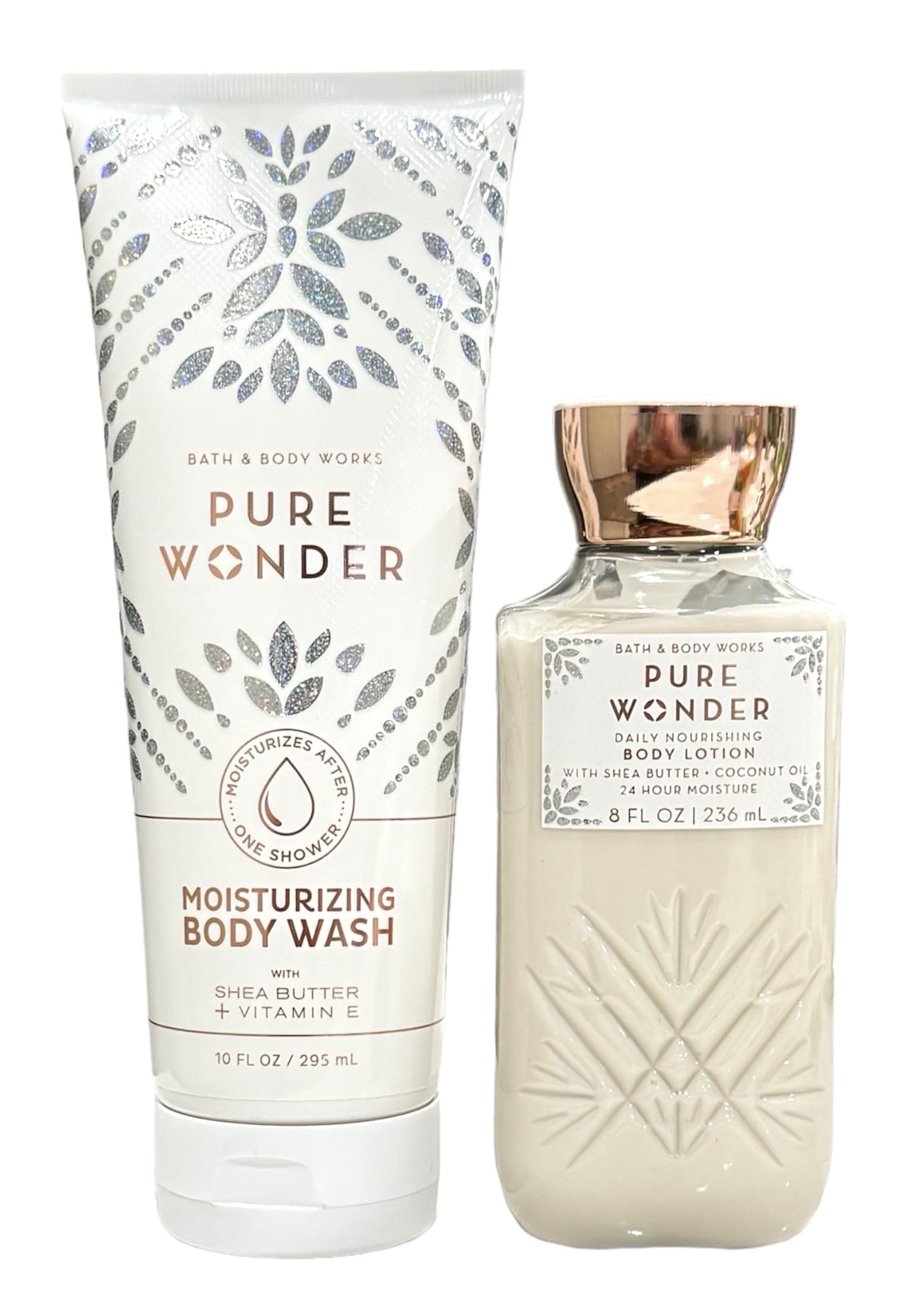 Bath & Body Shea Butter and Coconut Oil & Vitamin E Moisturizing Body Wash 10 oz and Body Lotion 8 OZ (Full Size, Pure Wonder) Pure Wonder Full Size