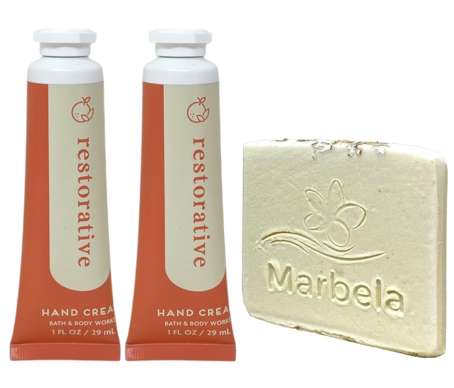 2 Bath Body Works Restorative - Of Hand Cream With a Natural Oats Sample Soap.