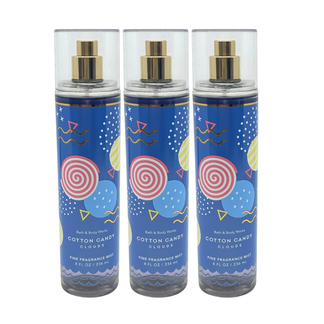 8 fl oz each. Fragrance Notes: Spun Sugar, Pink Berries, and Whipped Vanilla. Bath & Body Works Cotton Candy Clouds smell like watching the sunset over a dreamy horizon. Bath & Body Works Cotton Candy Clouds Fine Fragrance Mist - will make you fall in love with the first mist whether you spritz it on lightly or lavishly. Bath & Body Works Cotton Candy Clouds Fine Fragrance Mist – Pack of 3.