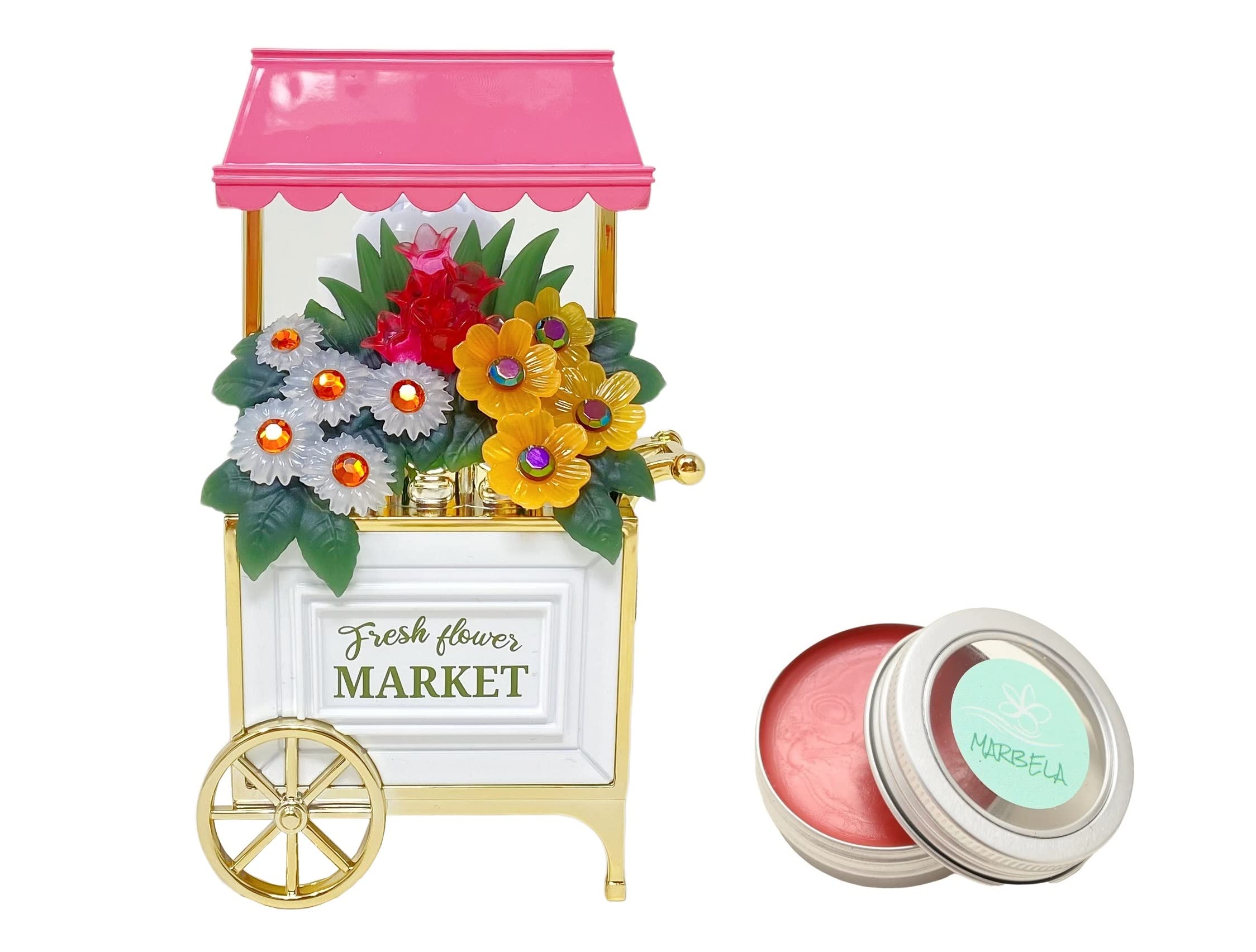 Bath Body Works Flower Cart Nightlight Wallflowers Fragrance Plug and a Marbela Strawberry Lip Balm. What it does: wafts your favorite, always-on fragrance into any room and brightens it up at the same time. Farmers market-inspired décor. Nightlight glows continuously (hello, around-the-clock illumination). Perfect for every (and any) room. Pairs with your favorite Wallflowers fragrance refills (sold separately). Marbela Strawberry Lip Balm - Notes of: Strawberry. Pucker up, baby! Marbela's natural lip balm is your go to for healing chapped lips that need a buttery treatment. And who can avoid delicious strawberry scented lips? The balm oil can also be used to moisturize dry areas, like elbows or cuticles.