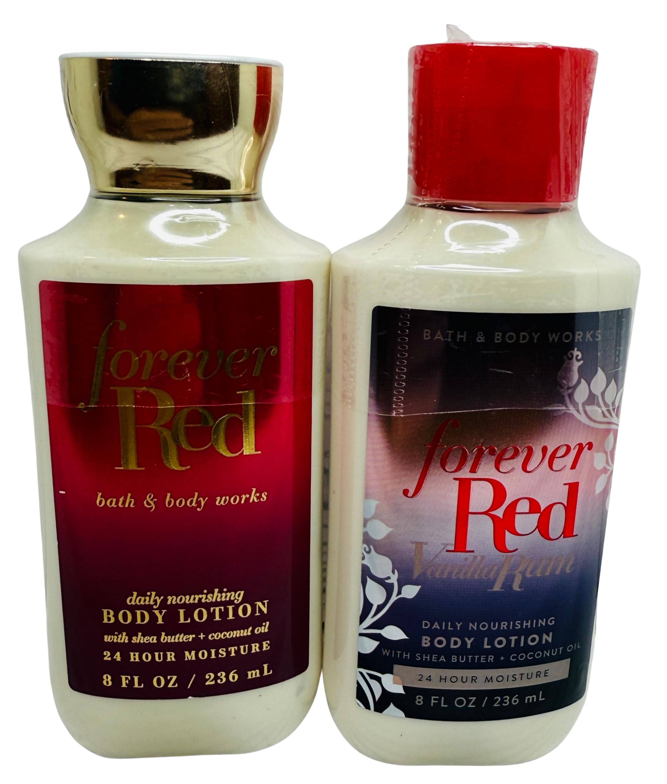 Bath & Body Works Forever Red and Forever Red Vanilla Rum Body Lotion 8 Ounces Each Set of 2