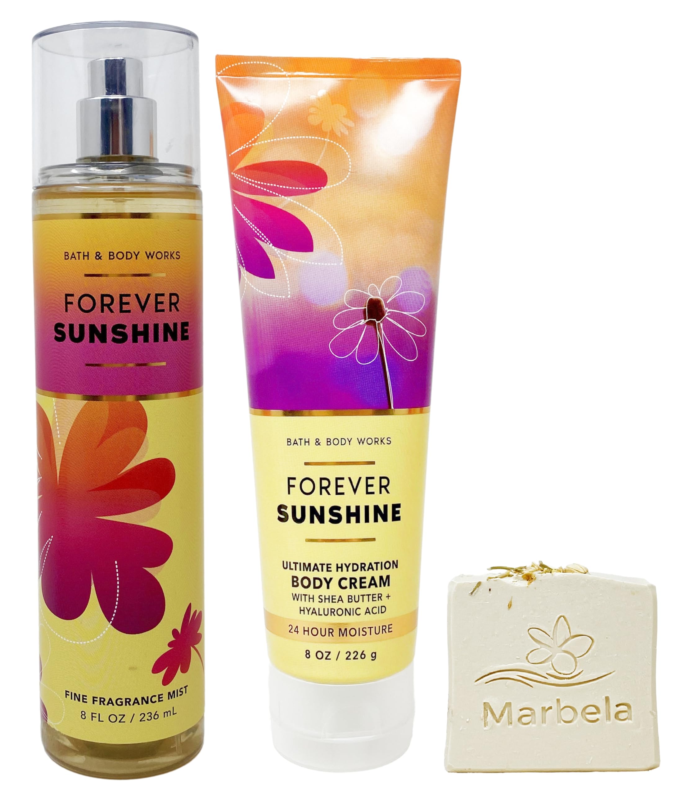 Bath & Body Works Forever Sunshine - Duo Gift Set - Fragrance Mist and Body Cream With Wild Jasmine Soap.