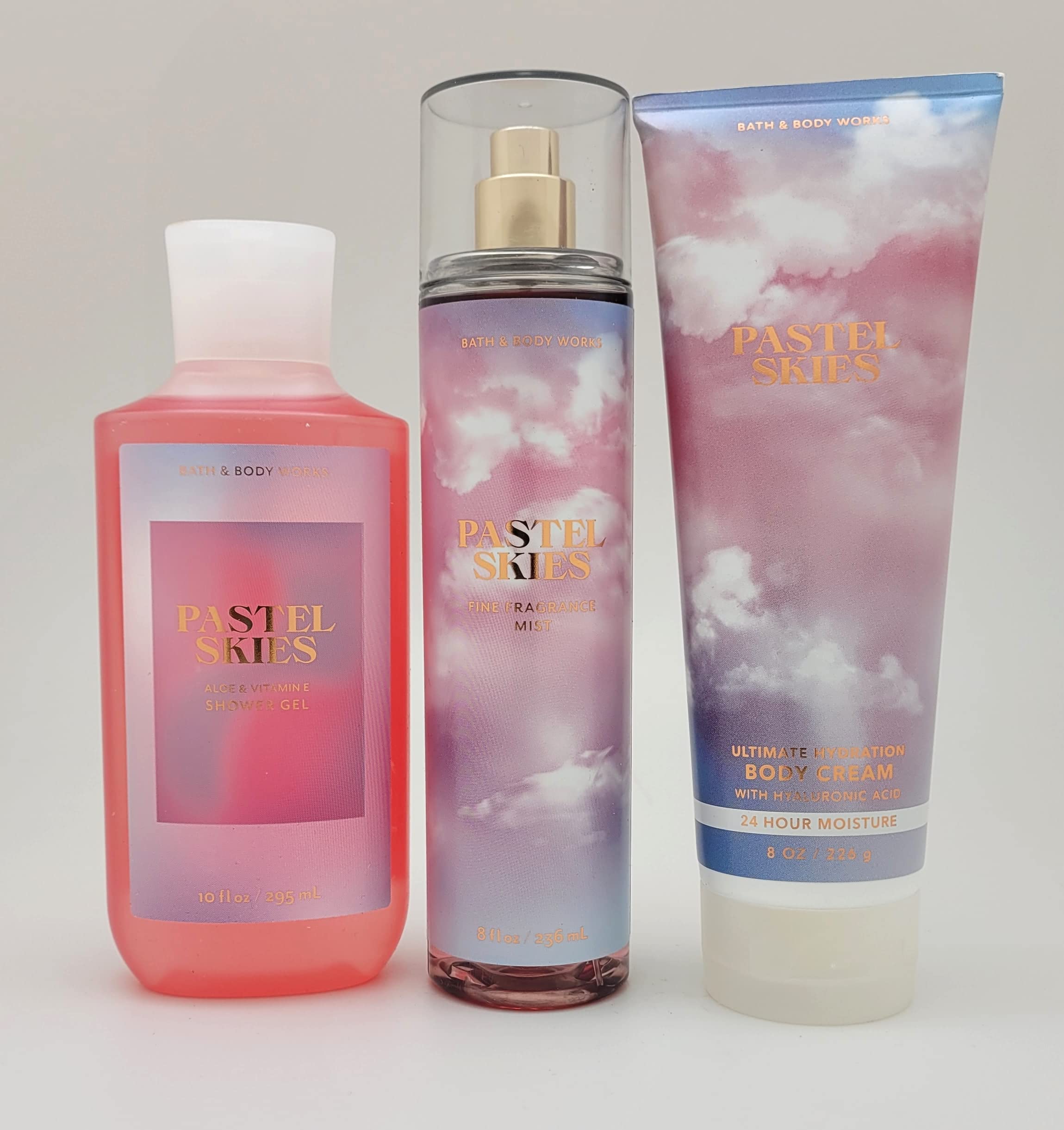 Pastel Skies - 3 pc Bundle - Fine Fragrance Mist, Ultimate Hydration Body Cream and Shower Gel - Spring 2022