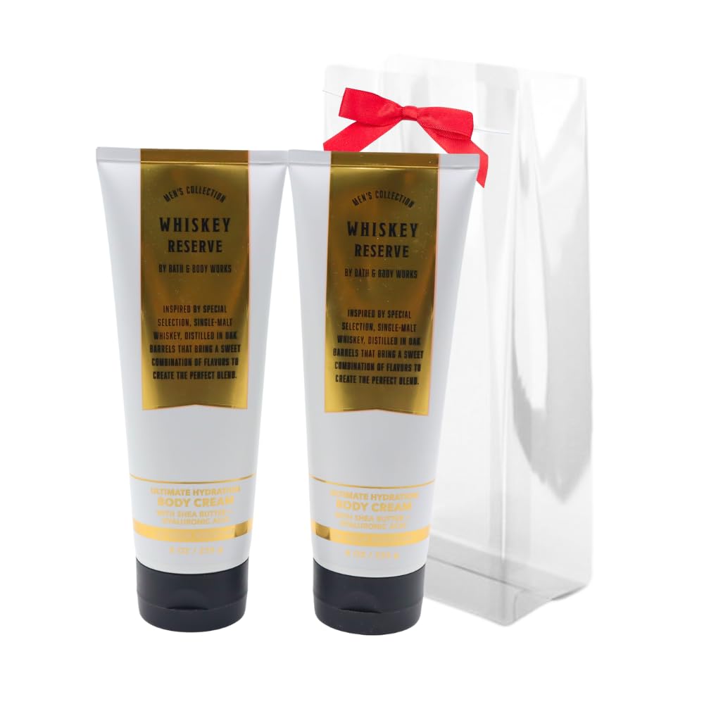 Bath & Body Works WHISKEY RESERVE Men's Collection Ultimate Hydration Body Cream Gift Set with a Red Bow for Holidays - Pack of 2