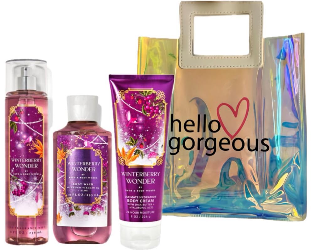 White Barn - Bath Body Works - Winterberry Wonder - 3 Piece Bundle - Spray - Body Cream - Shower Gel - Full Size and Hello Gorgeous Gift Bag. What it smells like: delicious, chilled berries. Fragrance notes: ruby frost winterberry, sparkling cranberry and crystal vanilla
